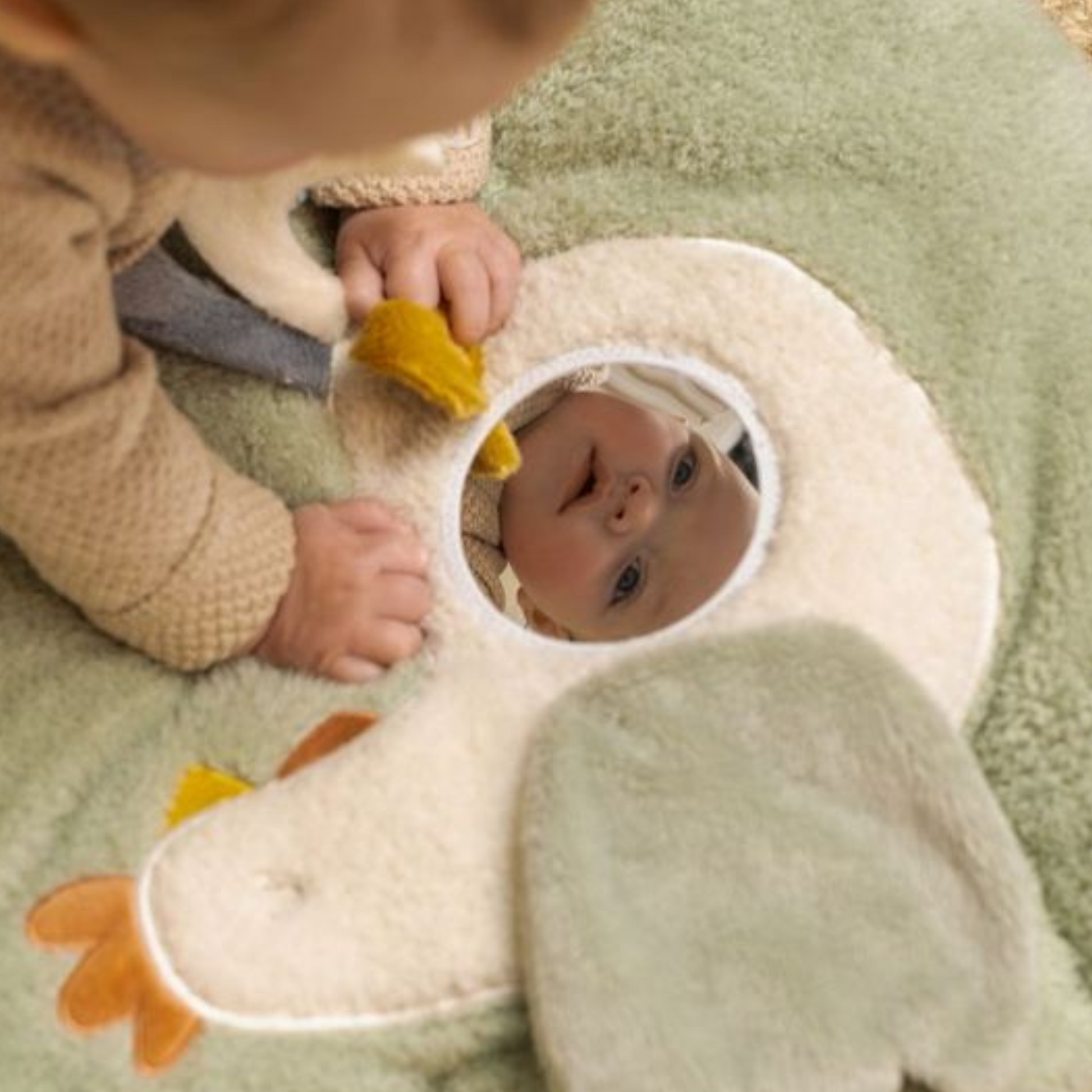 Dit gewatteerde boxkleed uit de Little Farm collectie stimuleert door de verschillende texturen en activiteiten de zintuigen van je kindje. Er valt zo veel te ontdekken en zien! De vleugels van de kip maken een knisperend geluidje, en ontdek wat er onder de vleugel zit. De wolkjes bevatten een heerlijk zachte teddy stof en er zijn diverse labels te ontdekken. Ook zit er een bijtring aan het boxkleed bevestigd.