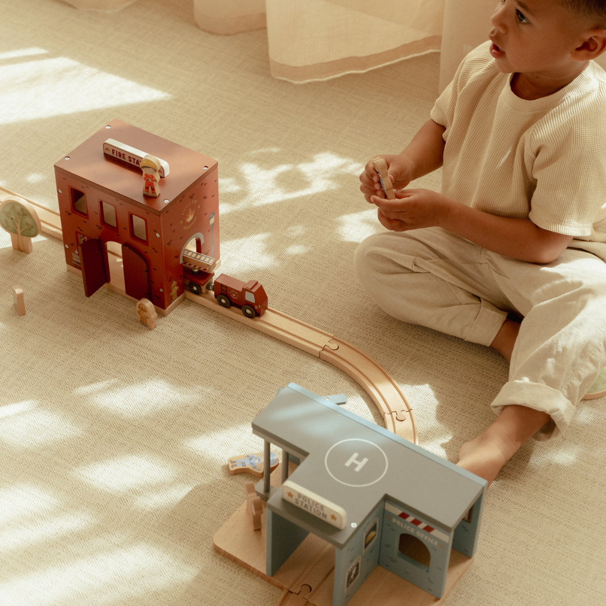 De Little Dutch Houten Brandweerkazerne is perfect te combineren met de houten treinbaan XL en andere voertuigensets voor nóg meer avontuur. Ideaal voor fantasierijk rollenspel, het ontwikkelen van sociale vaardigheden en urenlang speelplezier. Wie red jij vandaag?