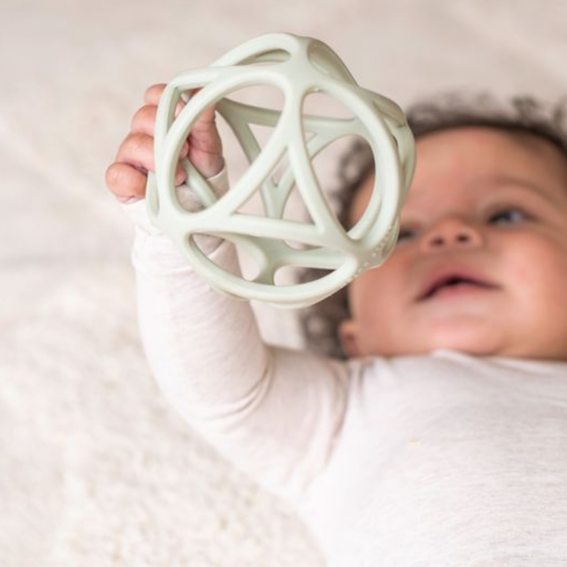Deze groene Little Dutch Grijpbal heeft geometrische vormen en de bal is zo ontworpen zodat hij makkelijk is vast te pakken door de kleine handjes. De bal is lekker licht, dus ideaal voor je kleintje om mee te spelen. Het materiaal is fijn om op te bijten wanneer de tandjes van je kleintje doorkomen. De siliconen grijpbal heeft een doorsnede van 10 centimeter en is is gemaakt van 100% siliconen. Voorzien van headercard. Geschikt voor kinderen vanaf 4 maanden.