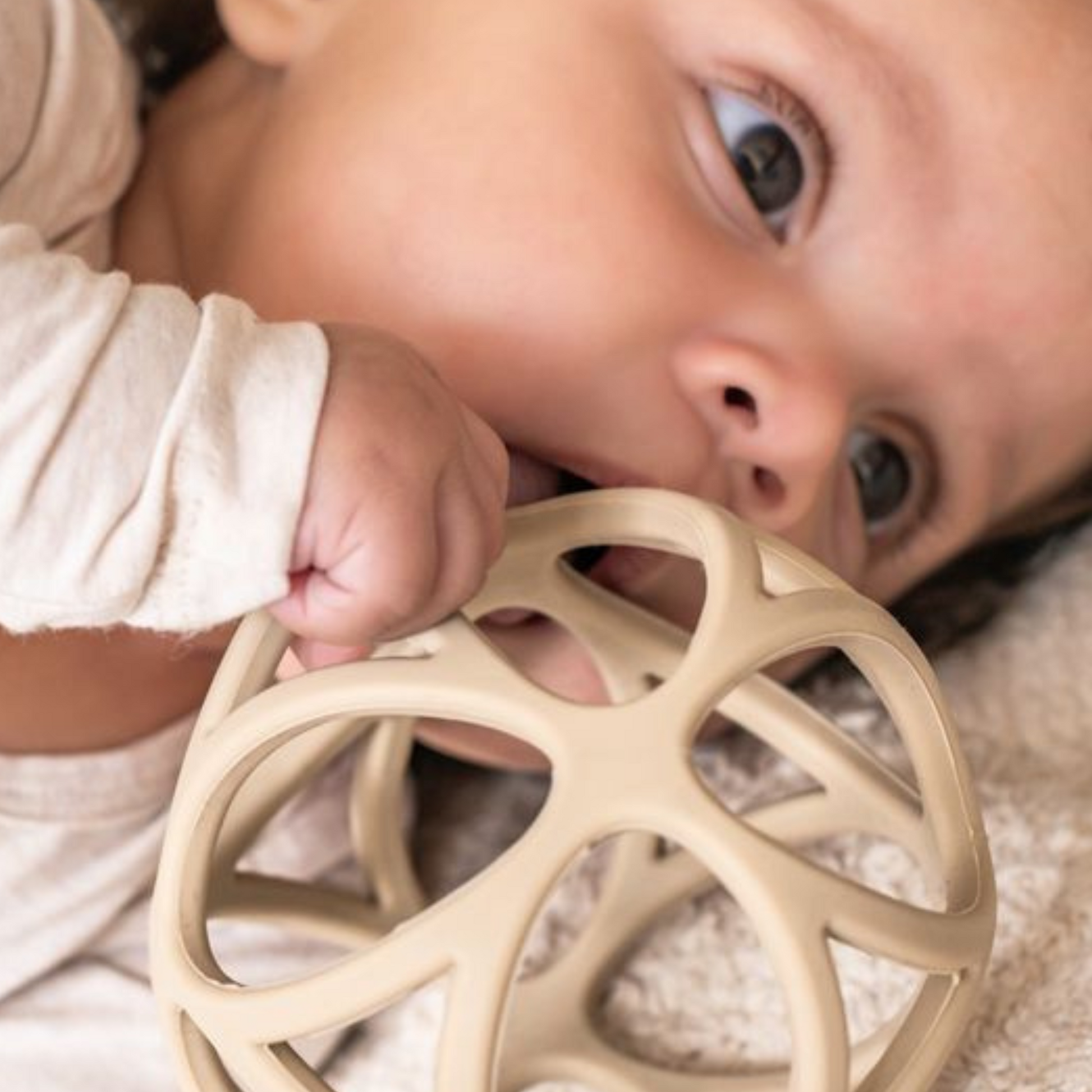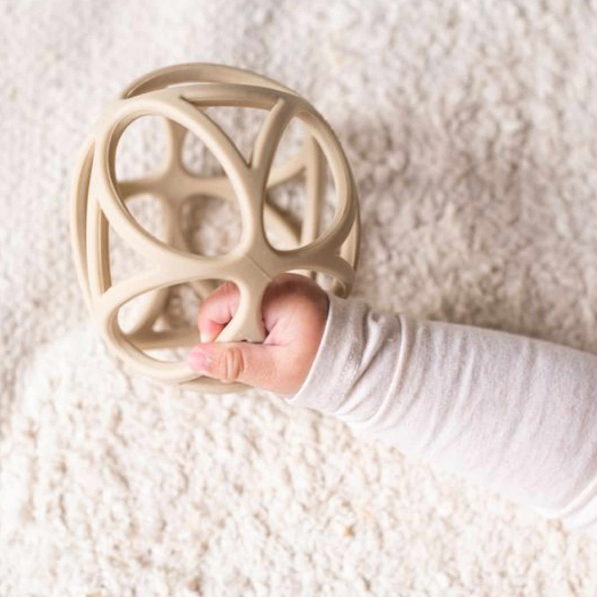 Deze zandkleurige Little Dutch Grijpbal heeft geometrische vormen en de bal is zo ontworpen zodat hij makkelijk is vast te pakken door de kleine handjes. De bal is lekker licht, dus ideaal voor je kleintje om mee te spelen. Het materiaal is fijn om op te bijten wanneer de tandjes van je kleintje doorkomen. De siliconen grijpbal heeft een doorsnede van 10 centimeter en is is gemaakt van 100% siliconen. Voorzien van headercard. Geschikt voor kinderen vanaf 4 maanden.