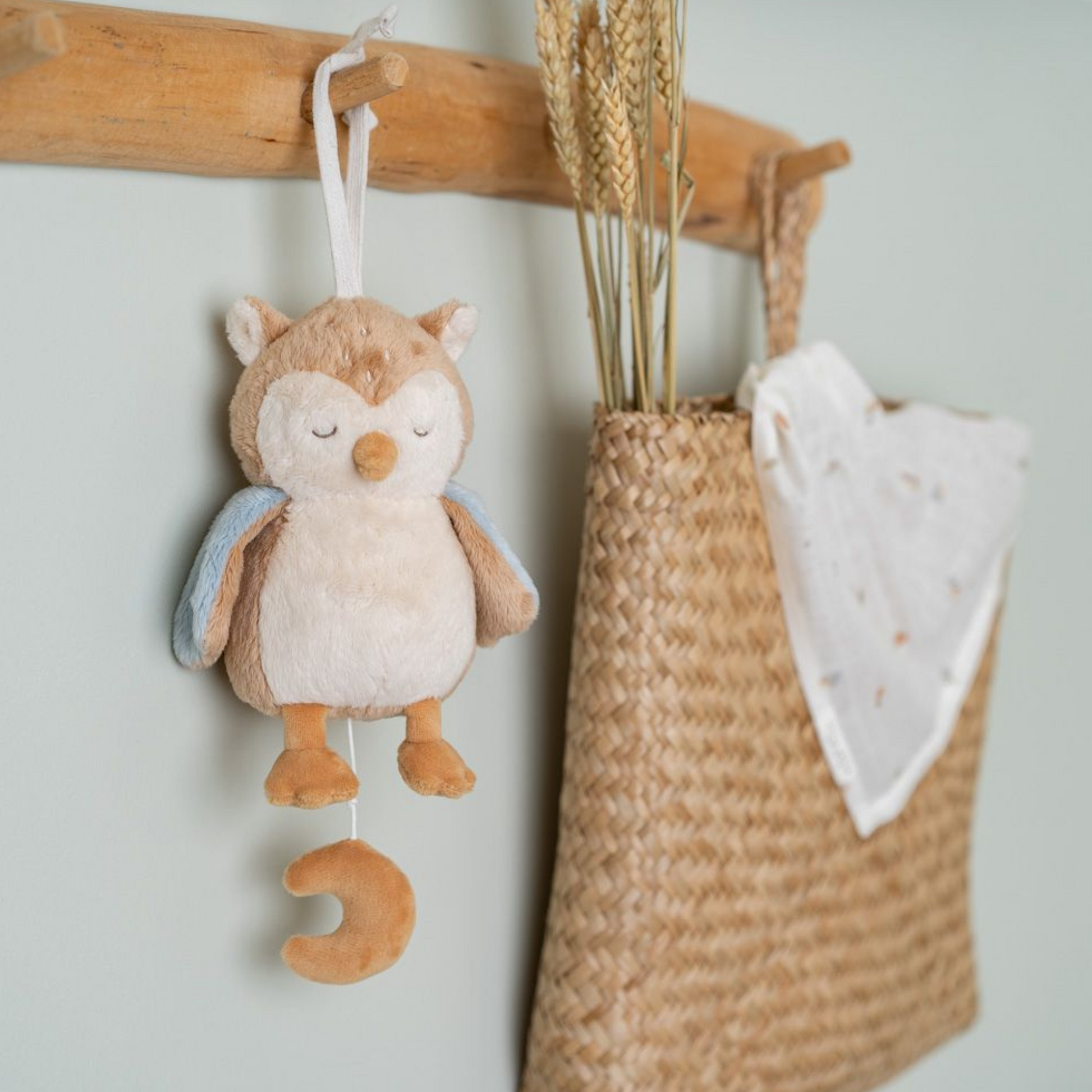 Deze vriendelijke uil leidt je naar een droomwereld vol verwondering en verbeelding. Creëer een vaste routine voor bedtijd met de betoverende melodieën van deze schattige muziekdoos. Trek aan het kleine maantje en het rustgevende slaapliedje begint te spelen terwijl je kleintje heerlijk in slaap dommelt. Een prachtig cadeau en een mooie decoratie voor de babykamer.
