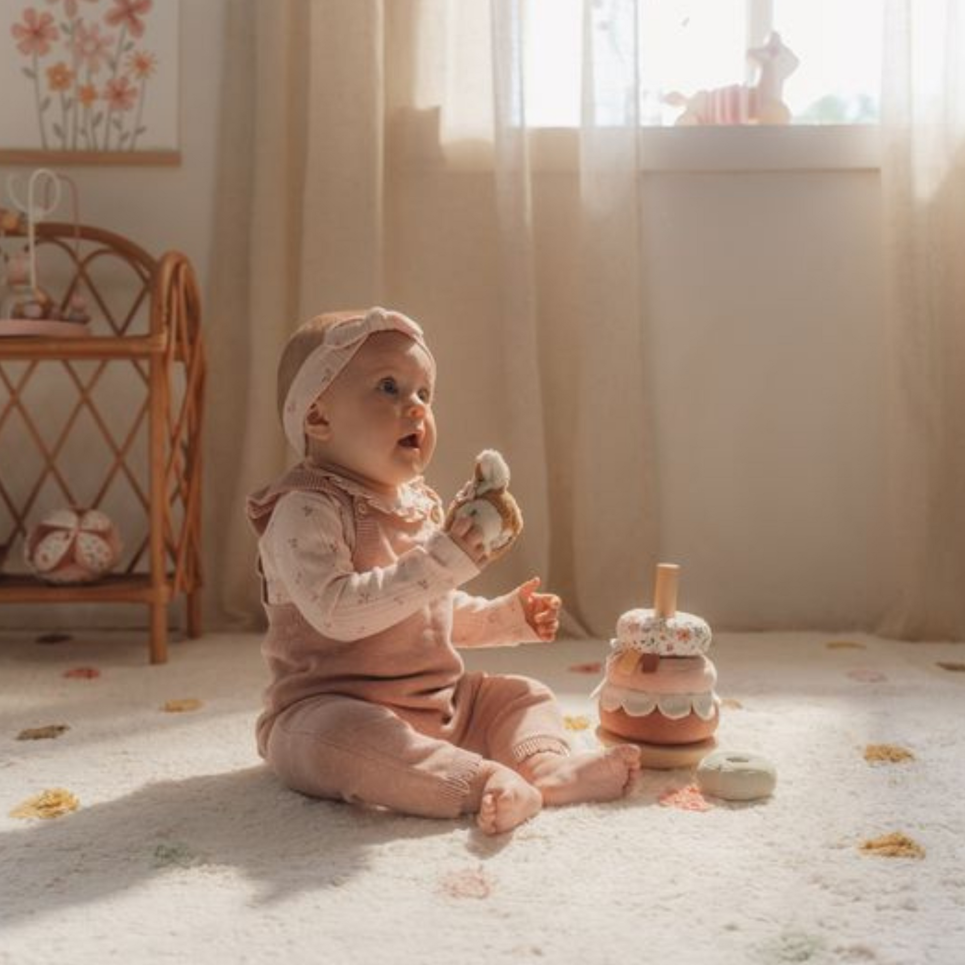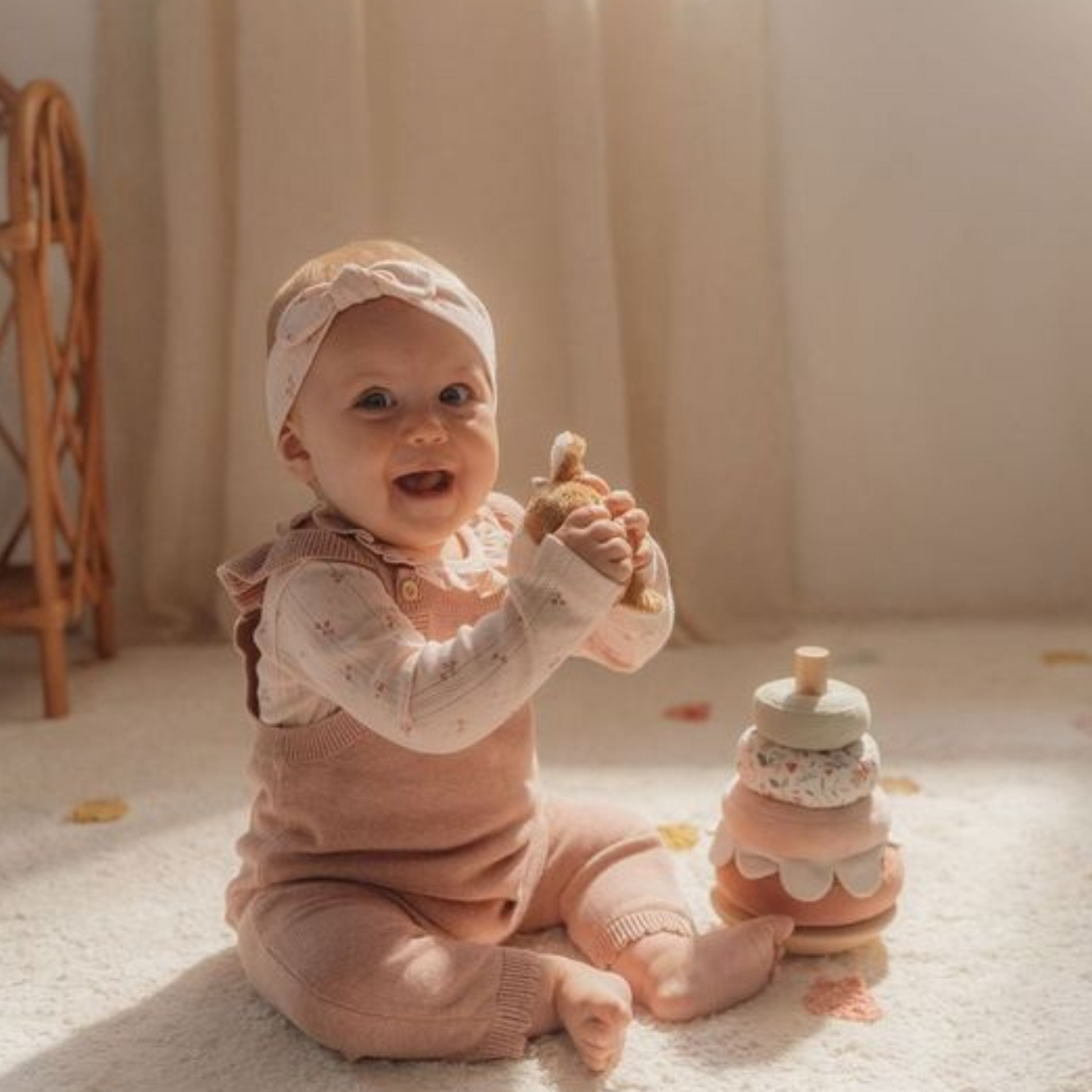 Het is best een uitdaging om de ringen te stapelen op een houten basis die heen en weer wiebelt. Maar het schattige hertje moedigt je aan om door te zetten, en zal het vieren met een klein dansje zodra de piramide af is. Elke mooie ring heeft een uniek ontwerp geïnspireerd op de Fairy Garden collectie. Deze tuimelstapelaar is ontworpen om hand-oogcoördinatie te ontwikkelen door middel van plezier en hands-on spelen. Laat het stapelavontuur beginnen!