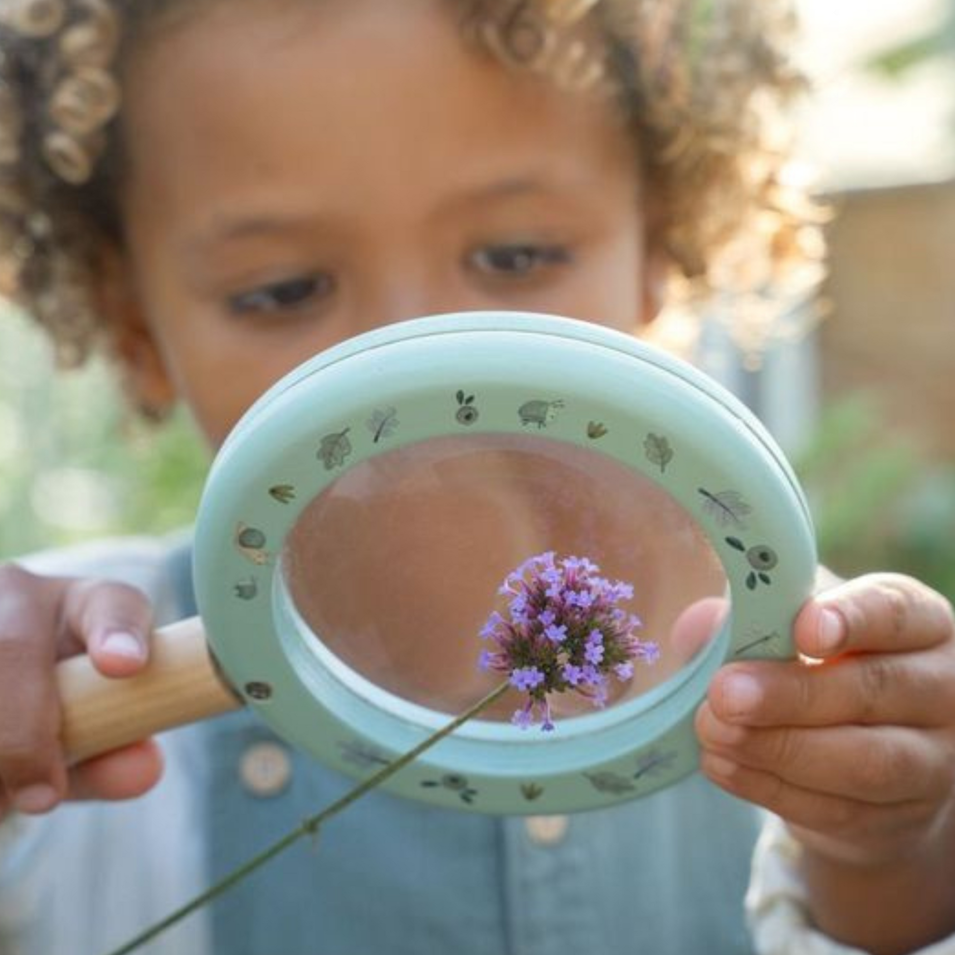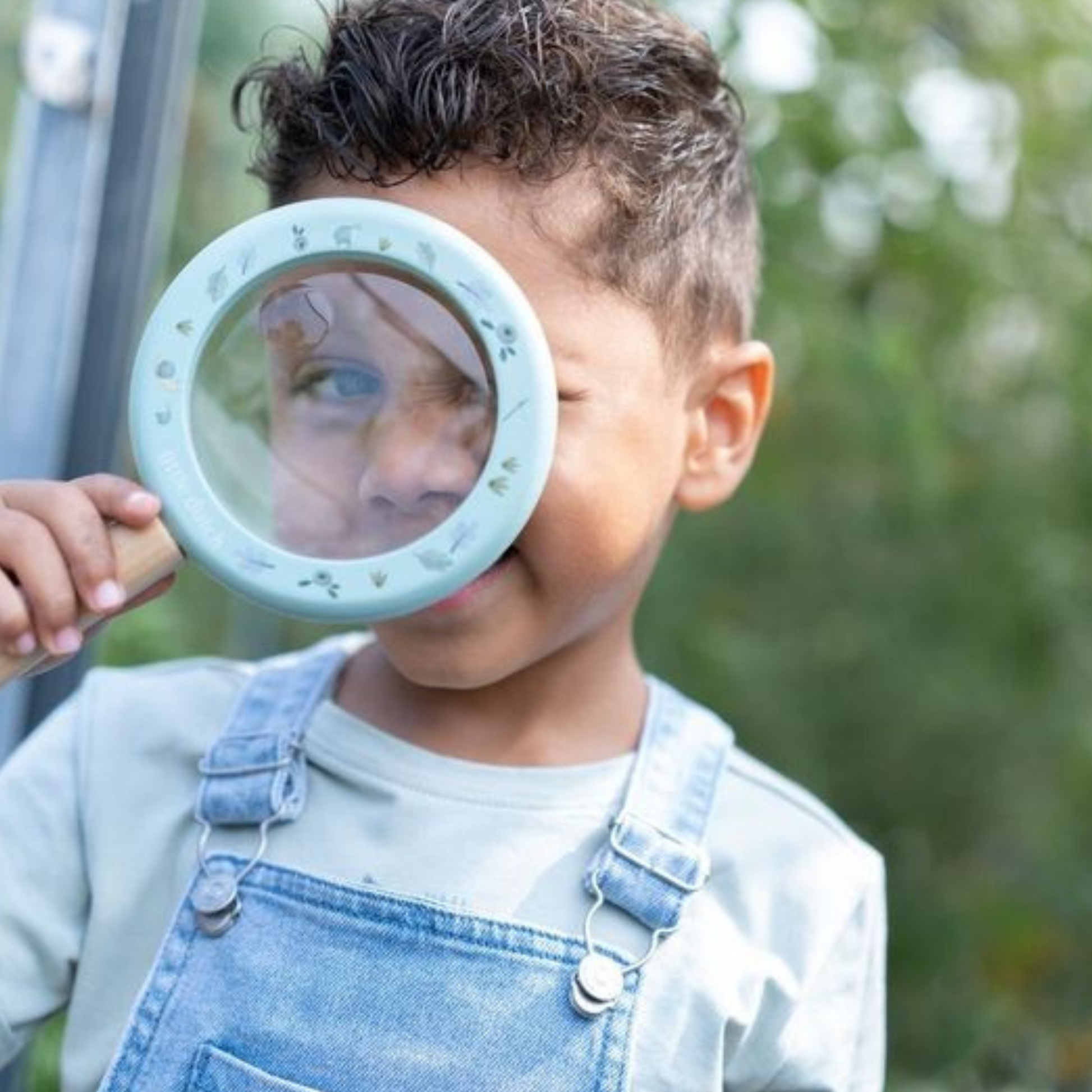 Het vergrootglas beschikt over een geïntegreerde extra kleine lens voor een nog gedetailleerdere kijk. Met een handig koordje om op te hangen, is het altijd binnen handbereik voor nieuwsgierige ontdekkingsreizigers. Perfect voor kleine avonturiers die de wereld om hen heen willen verkennen en kleine beestjes willen opsporen.