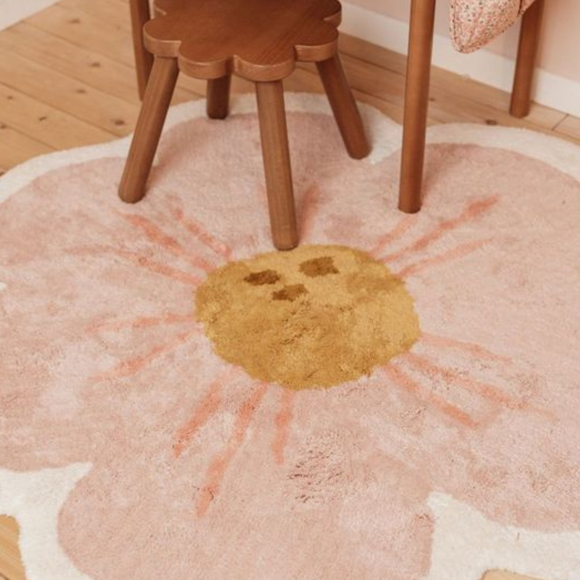 Dit vloerkleed in de vorm van een bloem heeft een zachte beige rand met roze bloembladen en okergele midden. Het kleed creëert een speelse en gezellige sfeer in de ruimte. Gemaakt van 100% organic cotton en voorzien van een antislip latex achterkant, kan het kleed eenvoudig worden gereinigd in zowel de wasmachine als de droger. Dankzij de zwaardere kwaliteit katoen heeft het een luxe uitstraling, en de aantrekkelijke prijs maakt het een uitstekende keuze voor elk interieur.