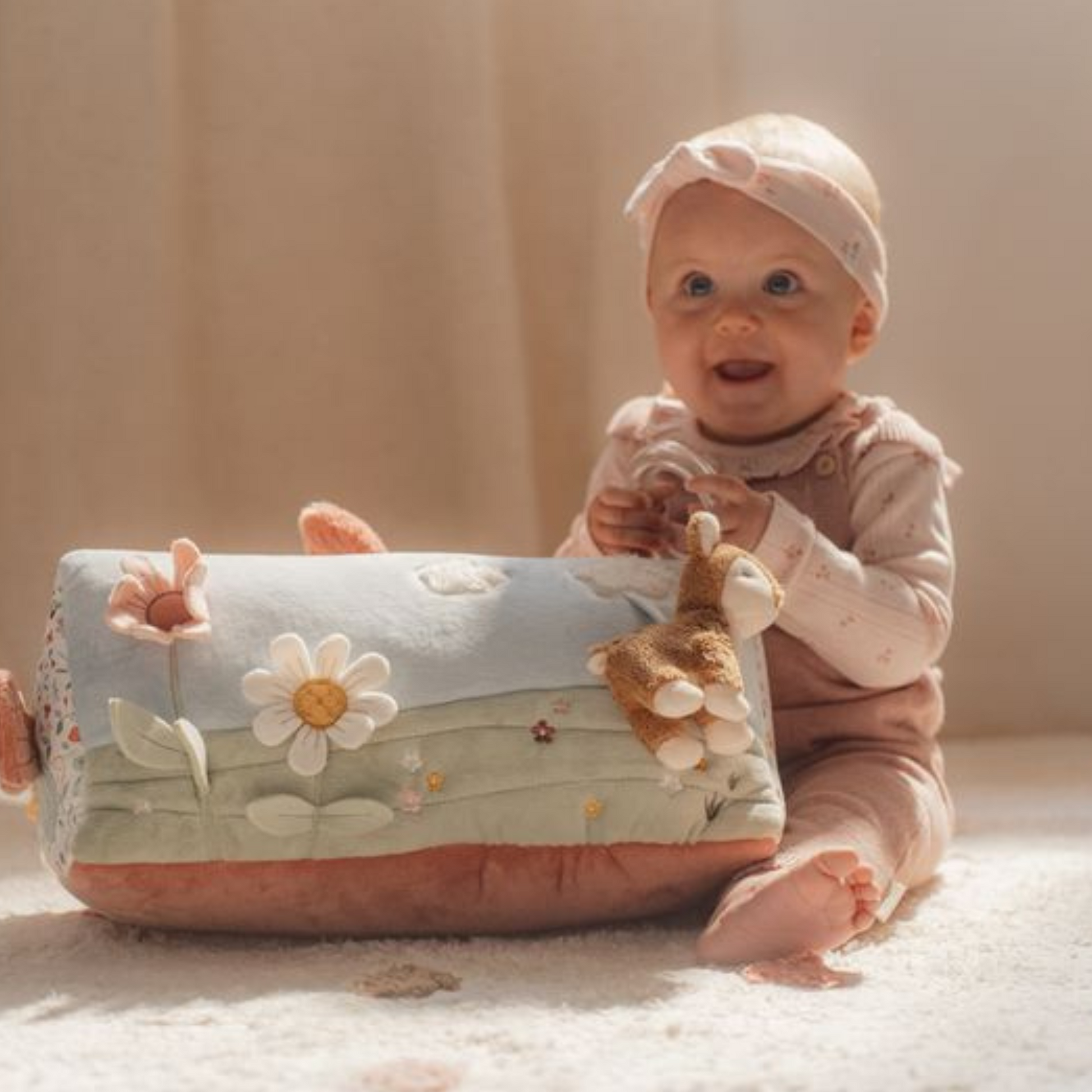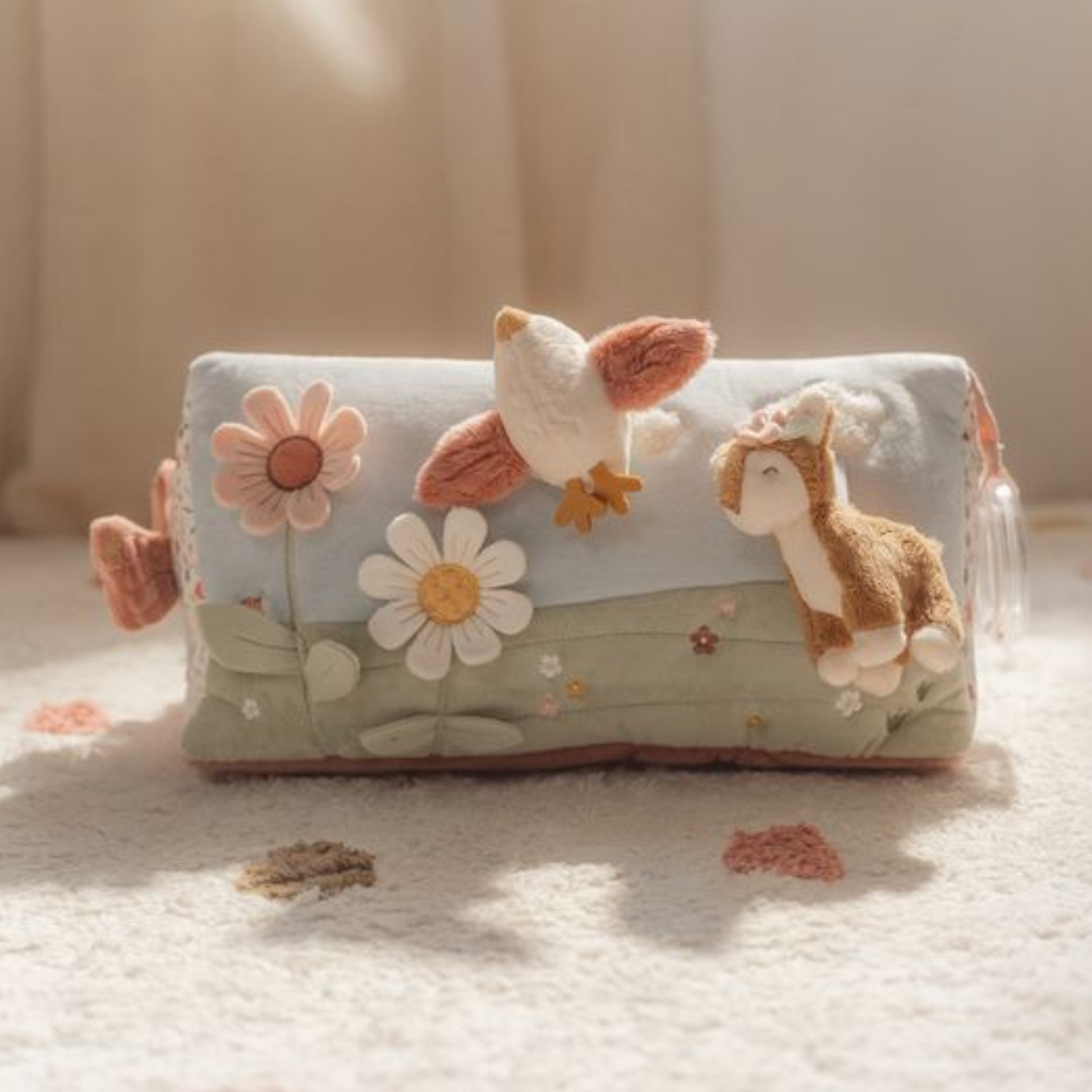 Deze veelzijdige activiteitendriehoek neemt je kleintje mee op avontuur door een magische tuin. Onderweg valt er veel te ontdekken. Van knisperende bloemblaadjes tot een spiegeltje. Met zoveel activiteiten en verschillende texturen om de zintuigen en verbeeldingskracht te prikkelen zal je baby heerlijk zoet spelen.