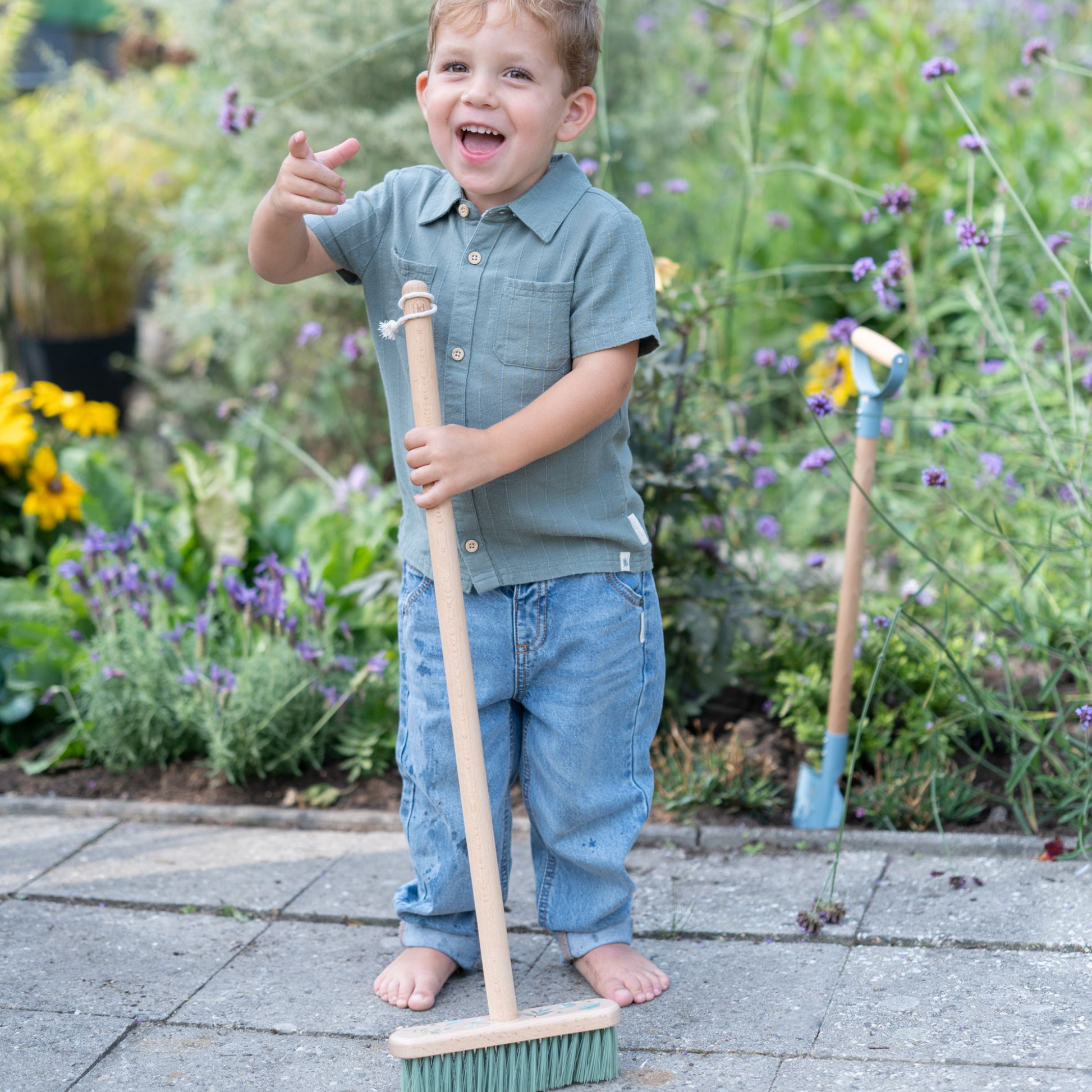 Gemaakt van stevig hout met kunststof haren, is deze bezem perfect voor jonge helpers. De bezemkop staat onder een handige hoek voor comfortabel vegen. Het kleurrijke ontwerp met vrolijke illustraties uit de Forest Friends collectie maakt tuinieren extra leuk. Voor eenvoudig opbergen is de bezem voorzien van een koord. Ideaal voor kleine tuiniers die willen helpen en ontdekken!