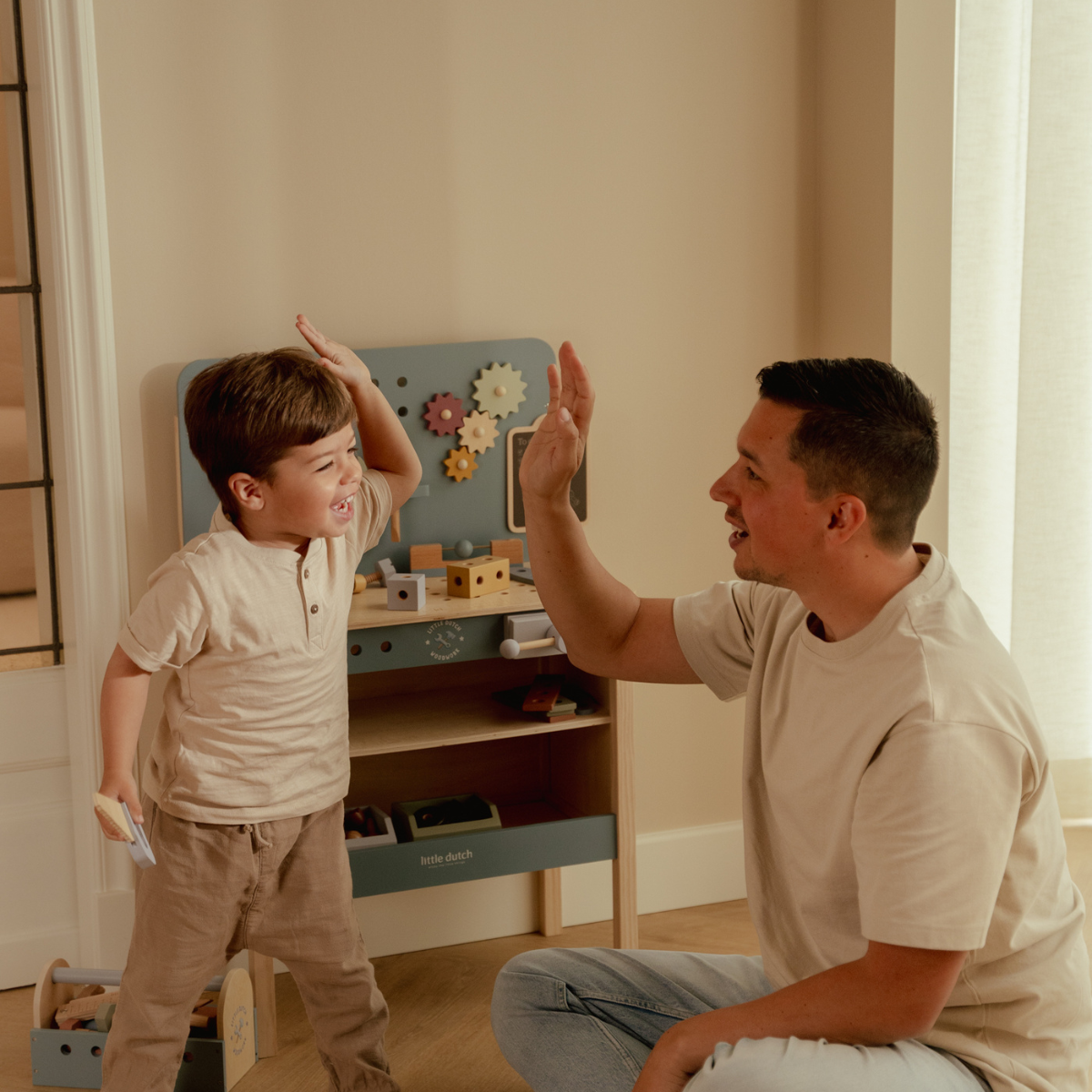 De Little Dutch Houten Gereedschapskist stimuleert motorische vaardigheden, creativiteit en fantasierijk rollenspel. Perfect te combineren met de houten werkbank en gereedschapsriem voor een complete kluservaring. Klaar om aan de slag te gaan?