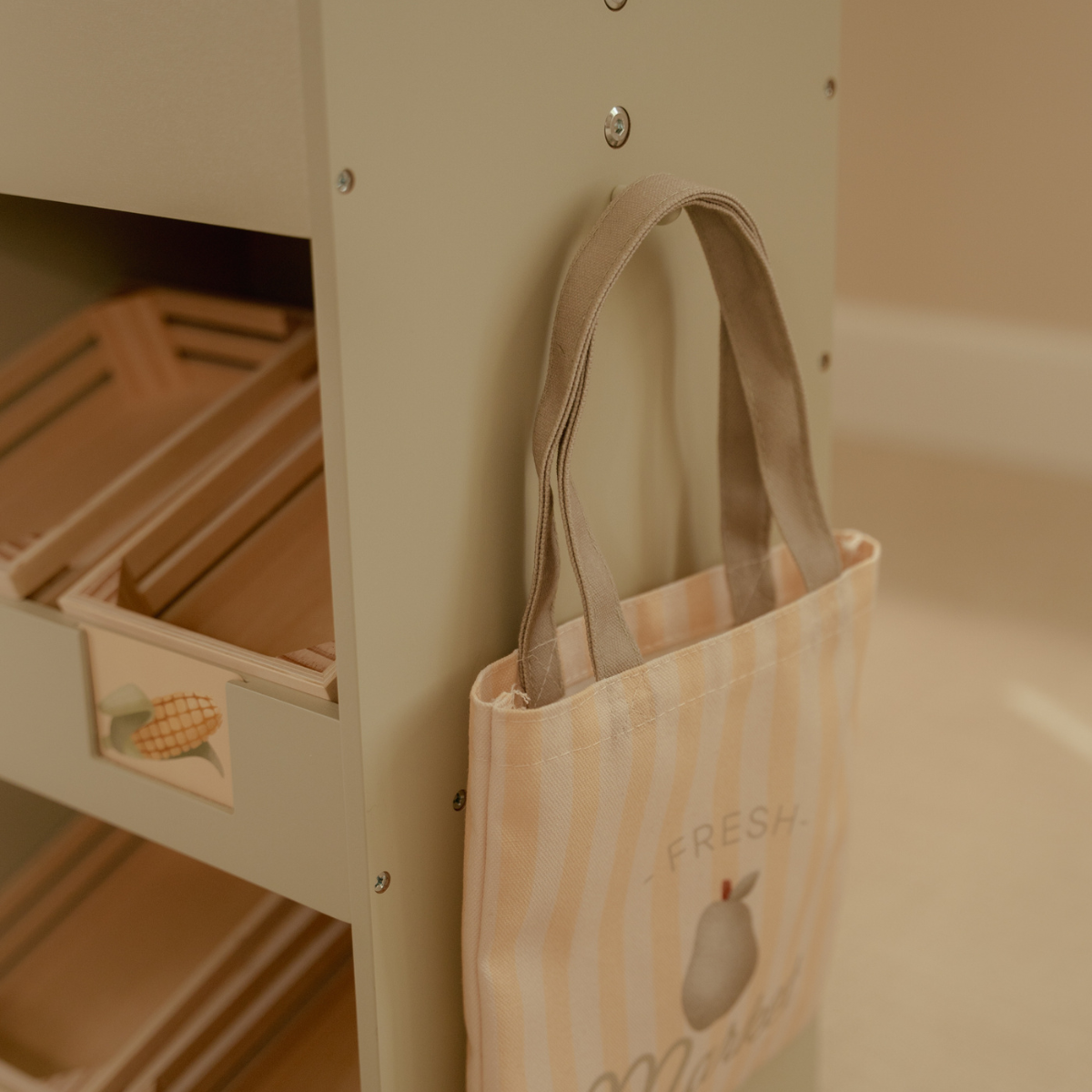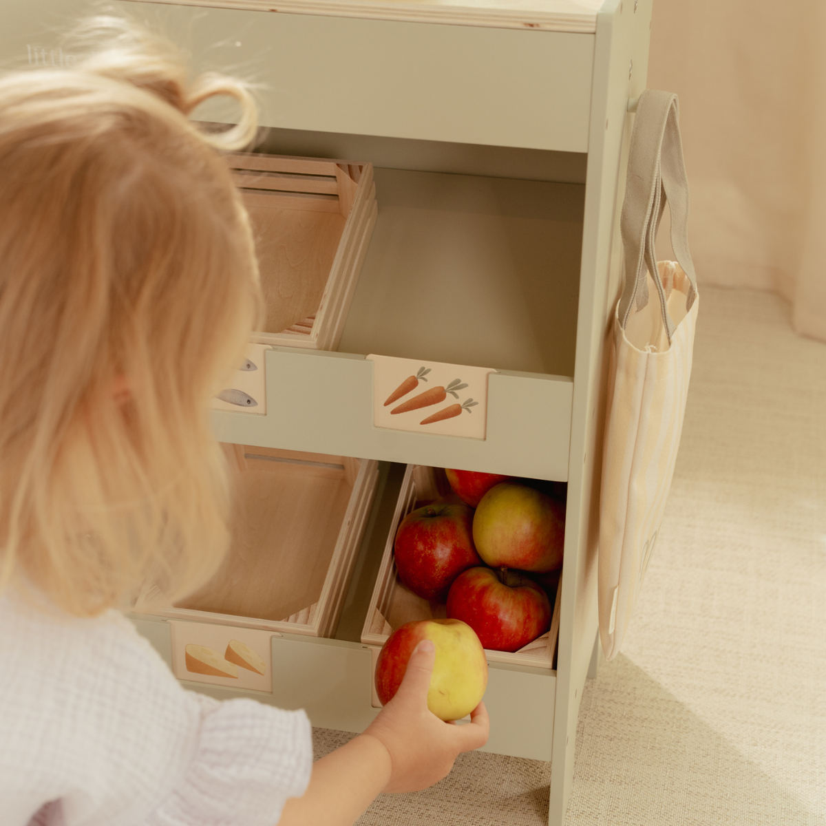 Combineer de Houten Marktkraam met de Little Dutch kassa, weegschaal of etagère met gebakjes om het spel nog realistischer te maken. Een prachtige speelset die sociale interactie, creativiteit en fantasie stimuleert – en een ideaal cadeau voor peuters en kleuters!