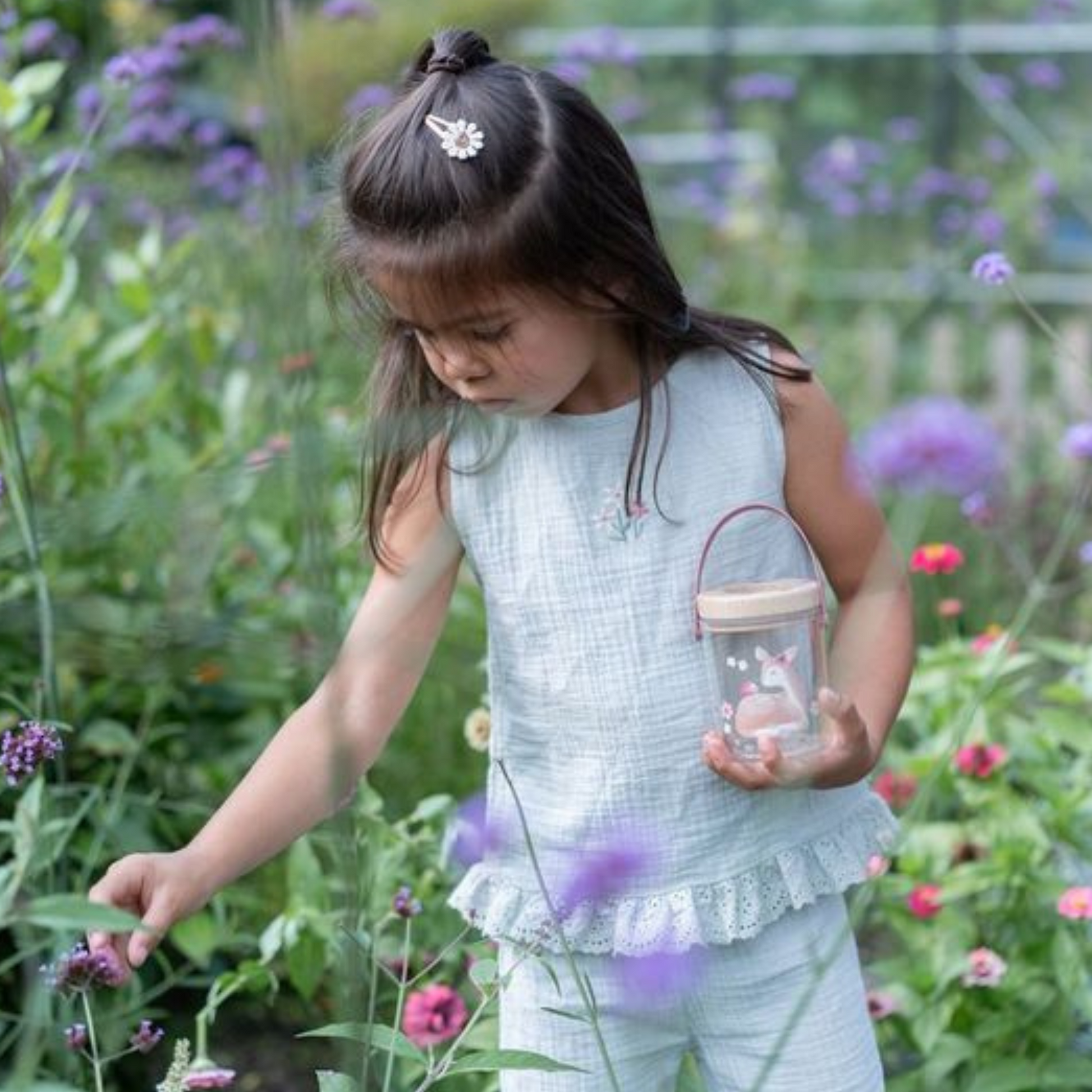 \nHet houten deksel, voorzien van een vergrootglas, laat je de kleinste details goed zien. Het deksel kan gemakkelijk worden verwijderd, en het potje is versierd met vrolijke Fairy Garden illustraties. Een insectenkaartje is meegeleverd om alle insecten af te vinken. Het doorzichtige plastic laat je de insecten van alle kanten bekijken, terwijl de luchtgaten zorgen voor ventilatie. Perfect voor nieuwsgierige kinderen die de natuur willen verkennen!