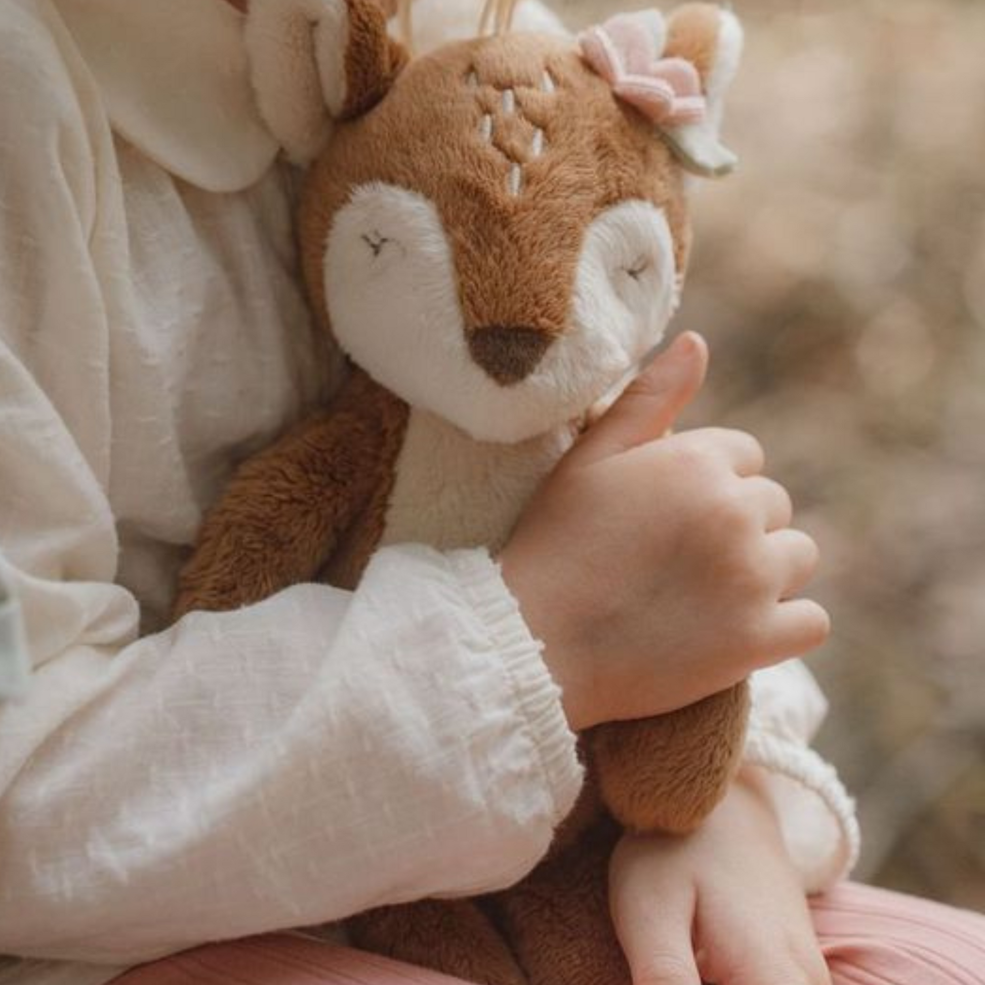Met haar lieve grijns en armen wijd nodigt zij je uit om te knuffelen en te spelen. Dankzij haar schattige lange poten kun je haar gemakkelijk overal mee naartoe nemen, wat de dag ook brengt. Samen zullen jullie avonturen beleven in de magische tuin van Fairy Garden, en wanneer het tijd is voor een voorleesverhaaltje, zal ze gezellig naast je komen zitten. Of je nu de wereld verkent of lekker knus een dutje doet, dit knuffelhertje staat altijd klaar om samen op een reis van verbeelding en ontdekking te gaan.