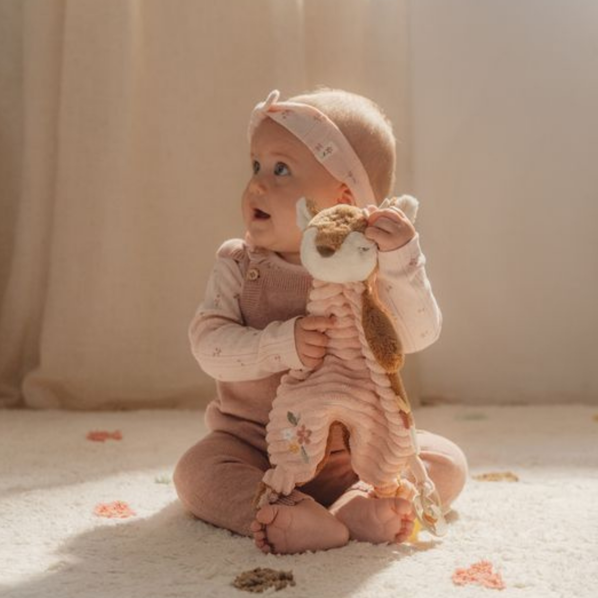 Dit knuffelvriendje staat klaar om lekker te knuffelen en je te troosten, waar en wanneer je maar wilt. Het vriendelijke hertje zal je geruststellen met haar magische zachtheid en geeft je een warme omhelzing wanneer je een vriendje nodig hebt. Het lichaam van het hertje is een heerlijke zachte doek met speelse labels, een Fairy Garden borduursel en twee knopen die kleine handjes makkelijk vast kunnen pakken. Met de handige lus kun je er eenvoudig een speentje aan vast te maken, zodat het altijd binnen handbereik is.