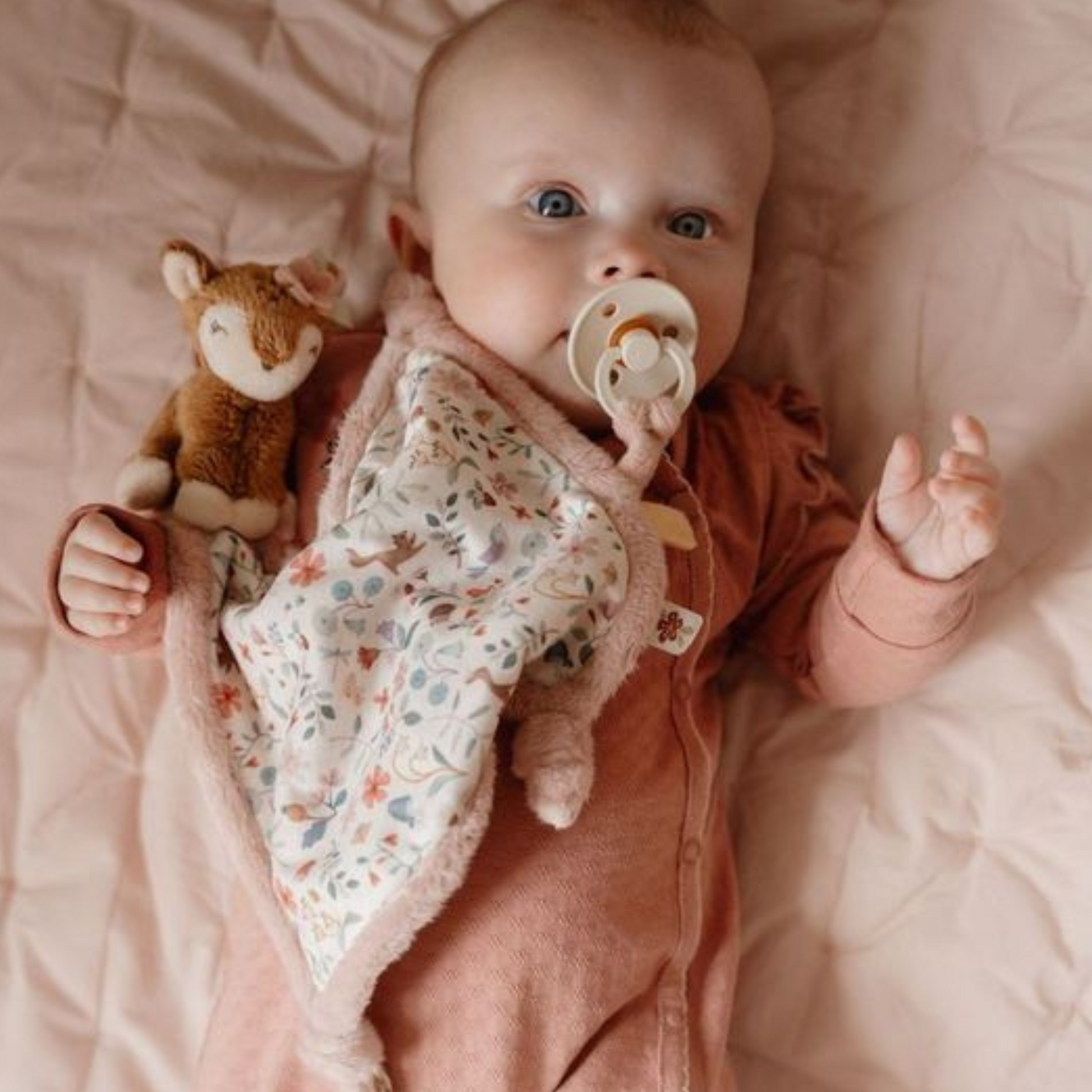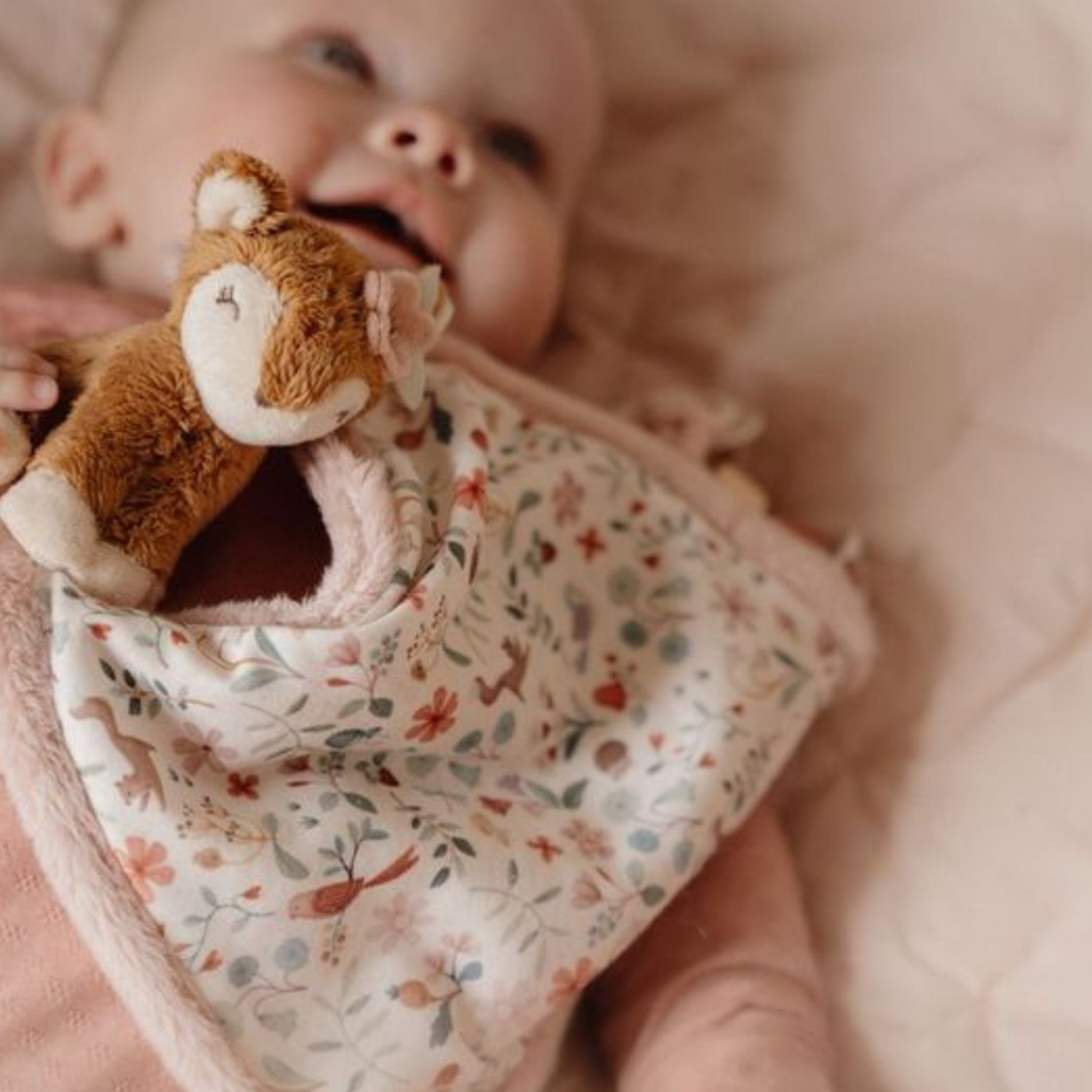Zorg ervoor dat dit heerlijk zachte knuffeldoekje altijd binnen handbereik is, voor geruststellende knuffels op elk gewenst moment, waar je ook bent. Versierd met het Fairy Garden dessin, biedt het vele leuke details voor baby’s om te ontdekken. Diverse labels die de zintuigen prikkelen, makkelijk vast te pakken knopen, en een lus om een speen of bijtring aan te bevestigen. Het zachte hertje maakt het doekje extra knuffelig.