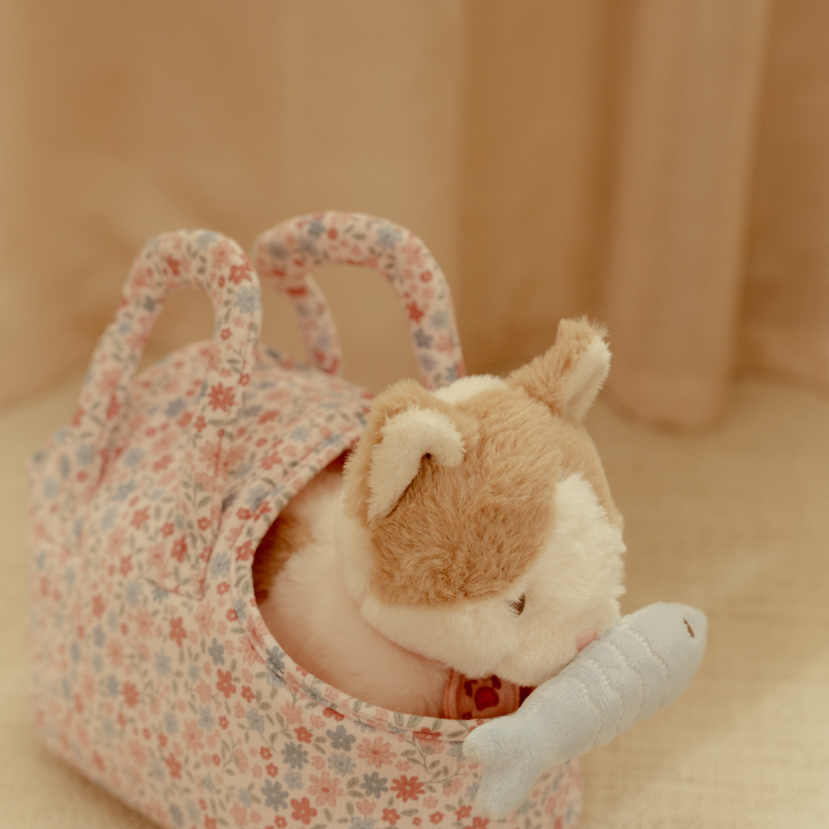 Voor alle kleine kattenliefhebbers is er de Knuffelkat Marley in Tas van Little Dutch. Dit schattige setje bestaat uit een zachte knuffelkat met een lief halsbandje én een stijlvolle bloemenprint tas. Dankzij de opening aan de voorkant kan Marley gezellig naar buiten gluren tijdens het reizen.