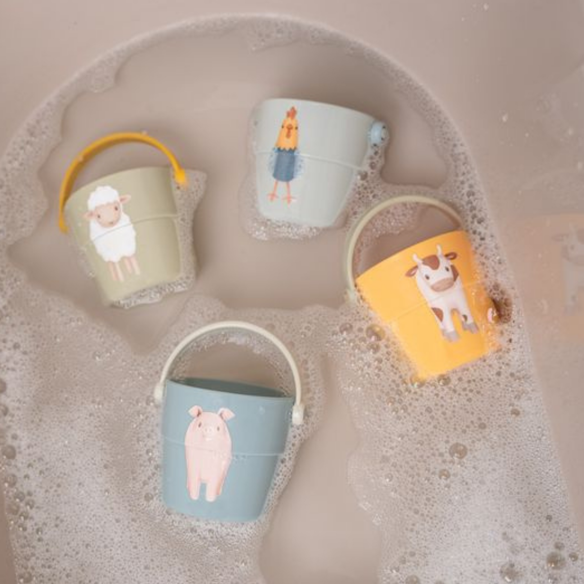 Je kleintje zal extra genieten tijdens het badderen met deze set van 4 badbekers. Ze zijn er in 4 kleuren en zijn versierd met illustraties van de boerderijdieren uit het FARM thema. De maat is precies goed voor kleine handjes en spelen met de kleine emmertjes helpt bij de ontwikkeling van motorische vaardigheden. Stapel ze op elkaar om een grote toren te bouwen en omver te werpen. Of vul ze met water en zie er verschillende vormen uitstromen. Spetters en plezier gegarandeerd! Verpakt in een full-colour windowbox. Geschikt voor kinderen vanaf 12 maanden.