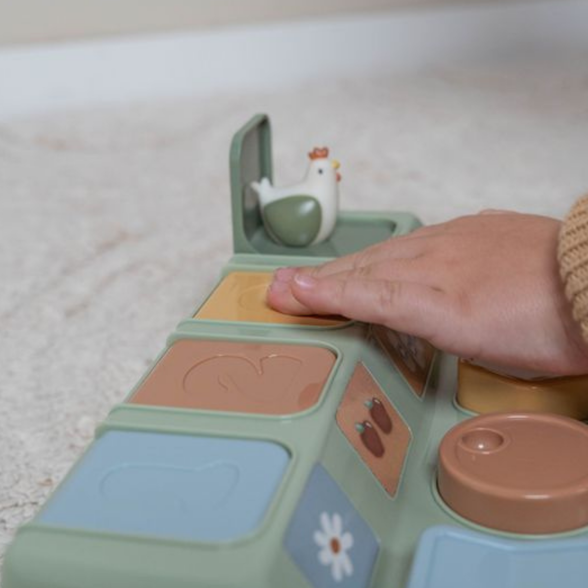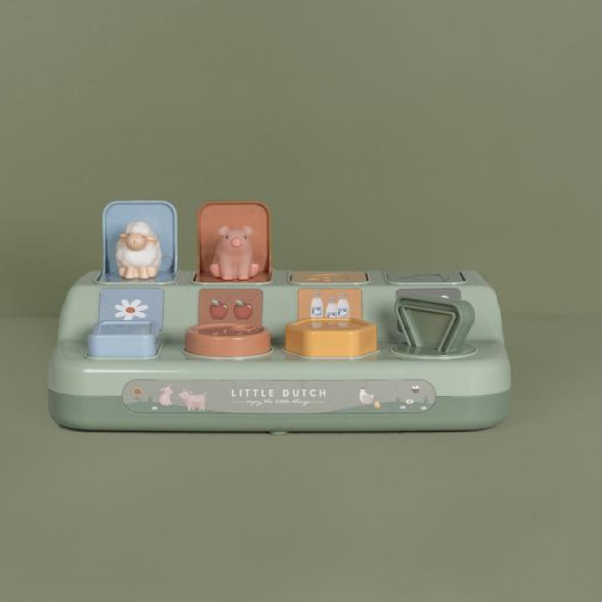 Bevorder de verbeelding, creativiteit en motoriek van je kindje met dit Little Dutch Pop up Farm spelletje. Train spelenderwijs kleur- en vormherkenning. Druk of draaien op de knoppen en HOPPÀ er verschijnt een diertje uit het Little Dutch Farm thema. Formaat: 27x7, 5x16 cm. Wordt geleverd in touch