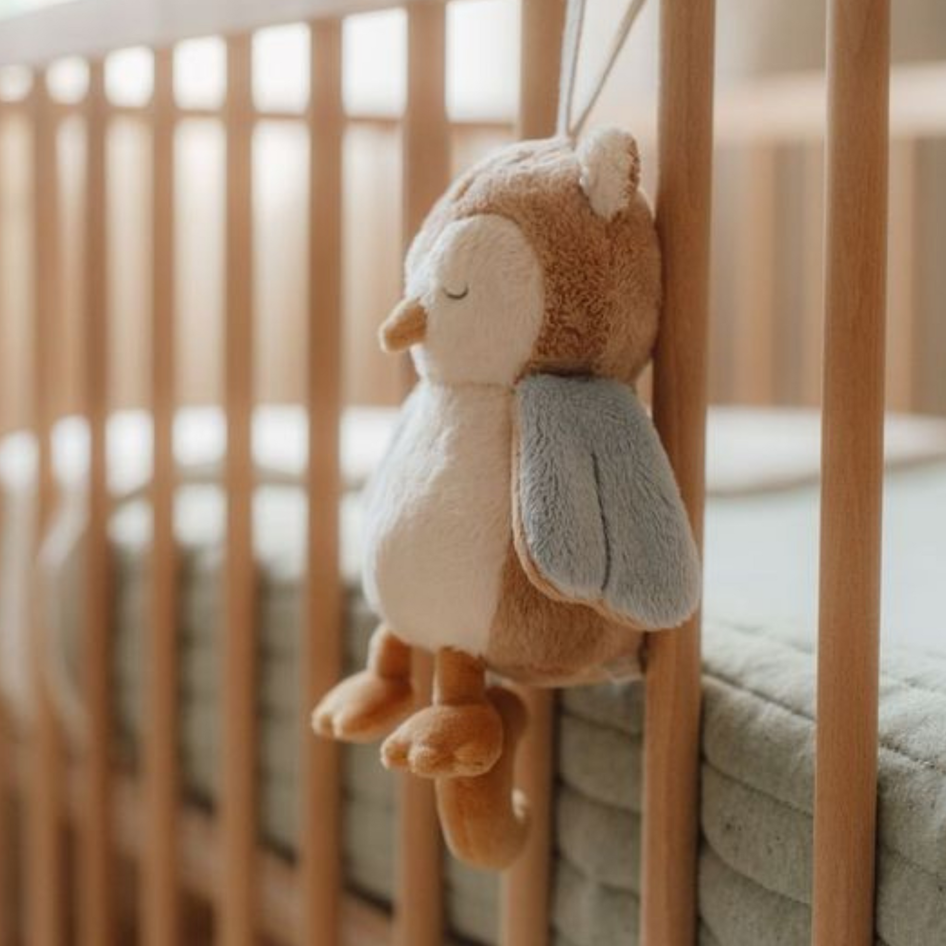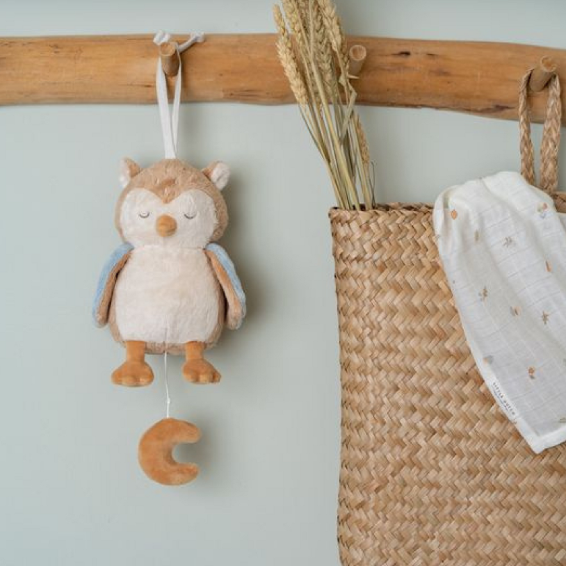 Deze vriendelijke uil leidt je naar een droomwereld vol verwondering en verbeelding. Creëer een vaste routine voor bedtijd met de betoverende melodieën van deze schattige muziekdoos. Trek aan het kleine maantje en het rustgevende slaapliedje begint te spelen terwijl je kleintje heerlijk in slaap dommelt. Een prachtig cadeau en een mooie decoratie voor de babykamer.