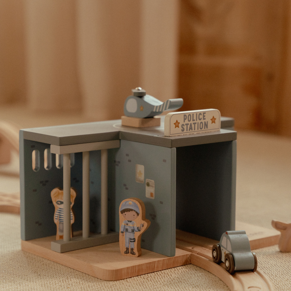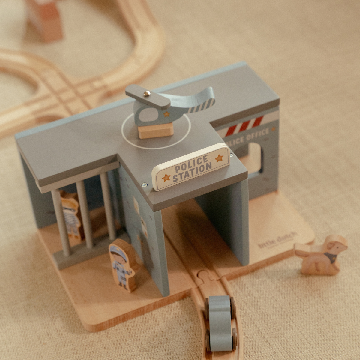 Het Little Dutch Houten Politiebureau sluit perfect aan bij de houten treinbaan XL en andere voertuigensets, waardoor kinderen hun eigen stad kunnen uitbreiden. Een ideale speelset die fantasie, sociale interactie en motorische vaardigheden stimuleert. Wie neem jij vandaag mee naar het bureau?