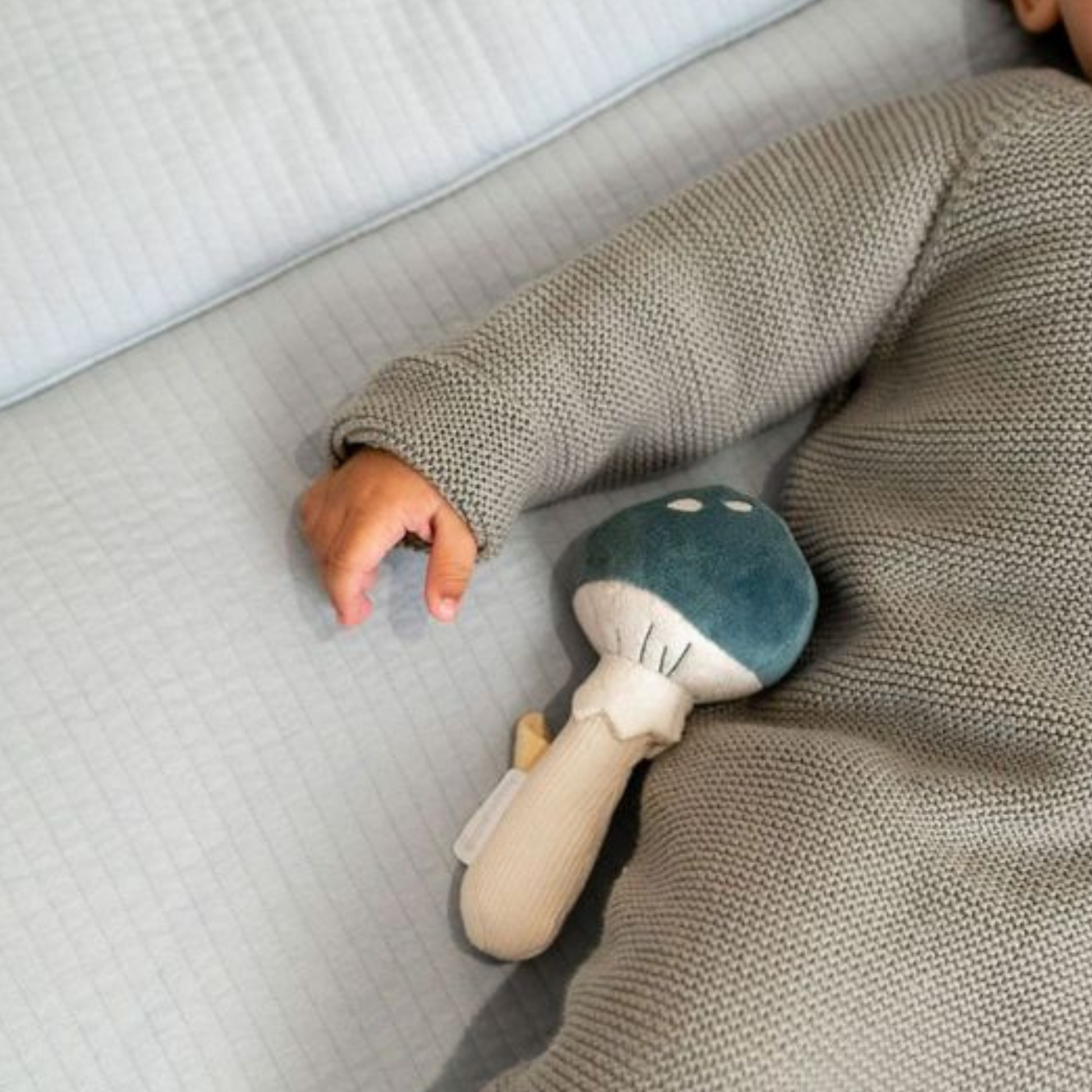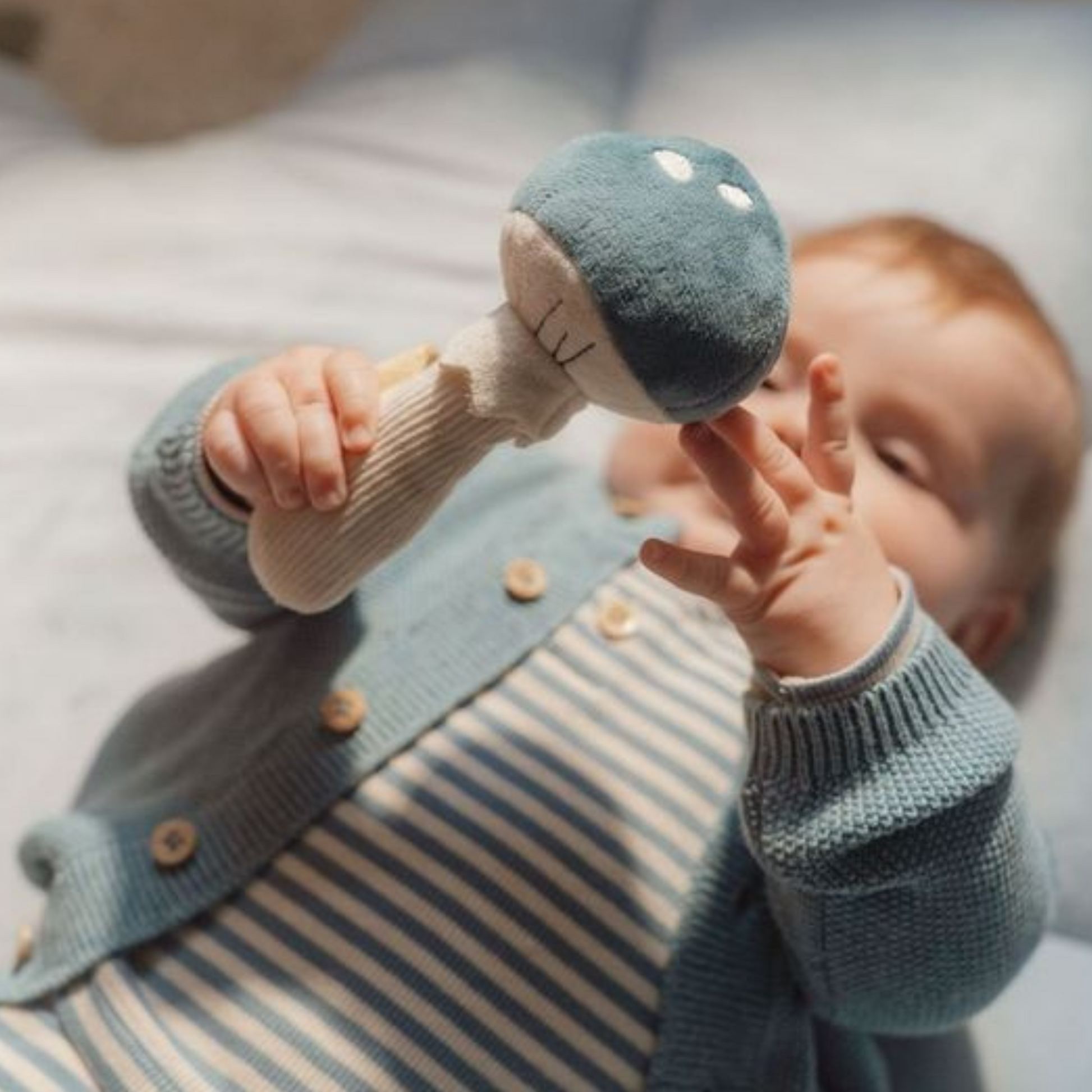 Als je er mee speelt hoor je een plezierig geluidje. De rammelaar stimuleert de hand-oogcoördinatie, is van heerlijk zacht materiaal gemaakt en kan makkelijk door kleine kinderhandjes vastgepakt worden.