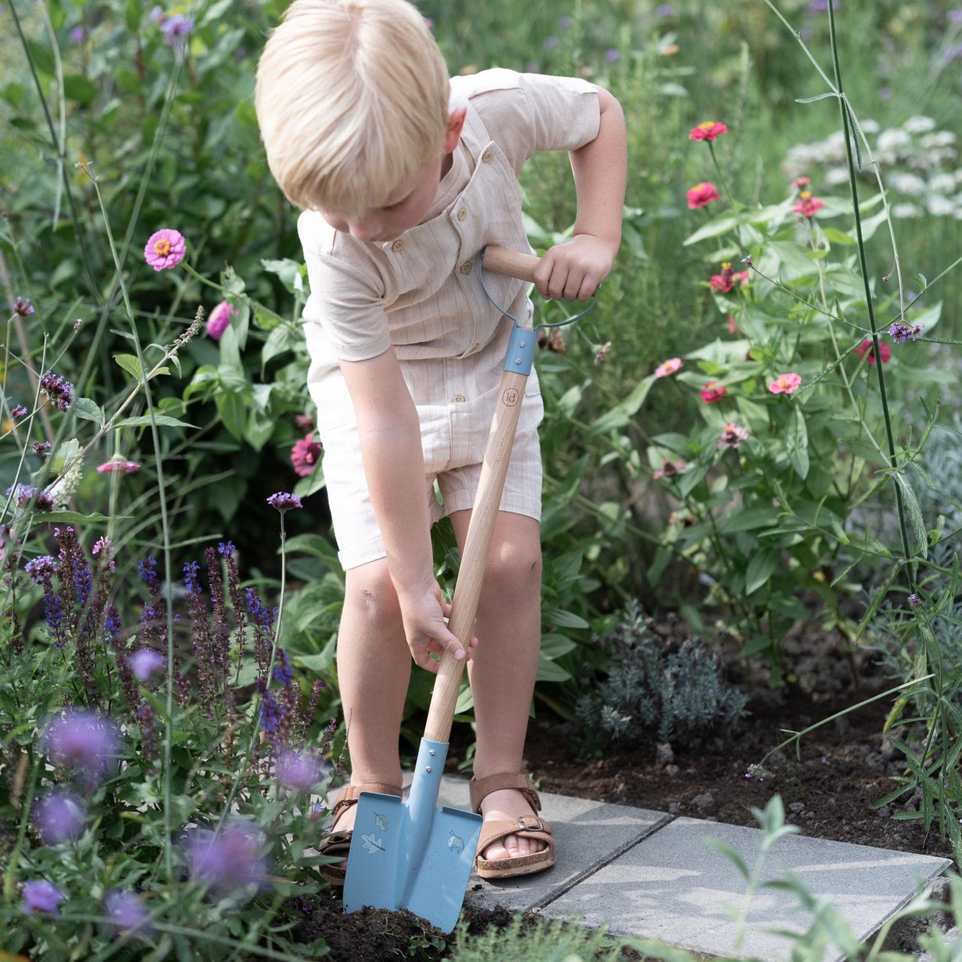 Deze schep heeft een stevig houten handvat en een metalen blad, perfect voor kleine handjes. Versierd met prachtige illustraties van blaadjes en een schattige kever, geïnspireerd door de Forest Friends collectie. Of je nu in de tuin werkt of in de zandbak speelt, deze schep is altijd handig. Het handvat bovenop zorgt voor een goede grip, waardoor het scheppen nog makkelijker wordt. Een onmisbaar gereedschap voor jonge ontdekkers!