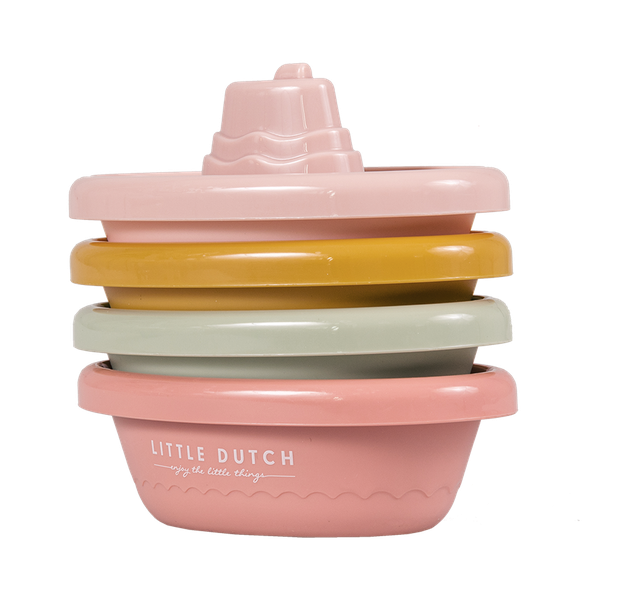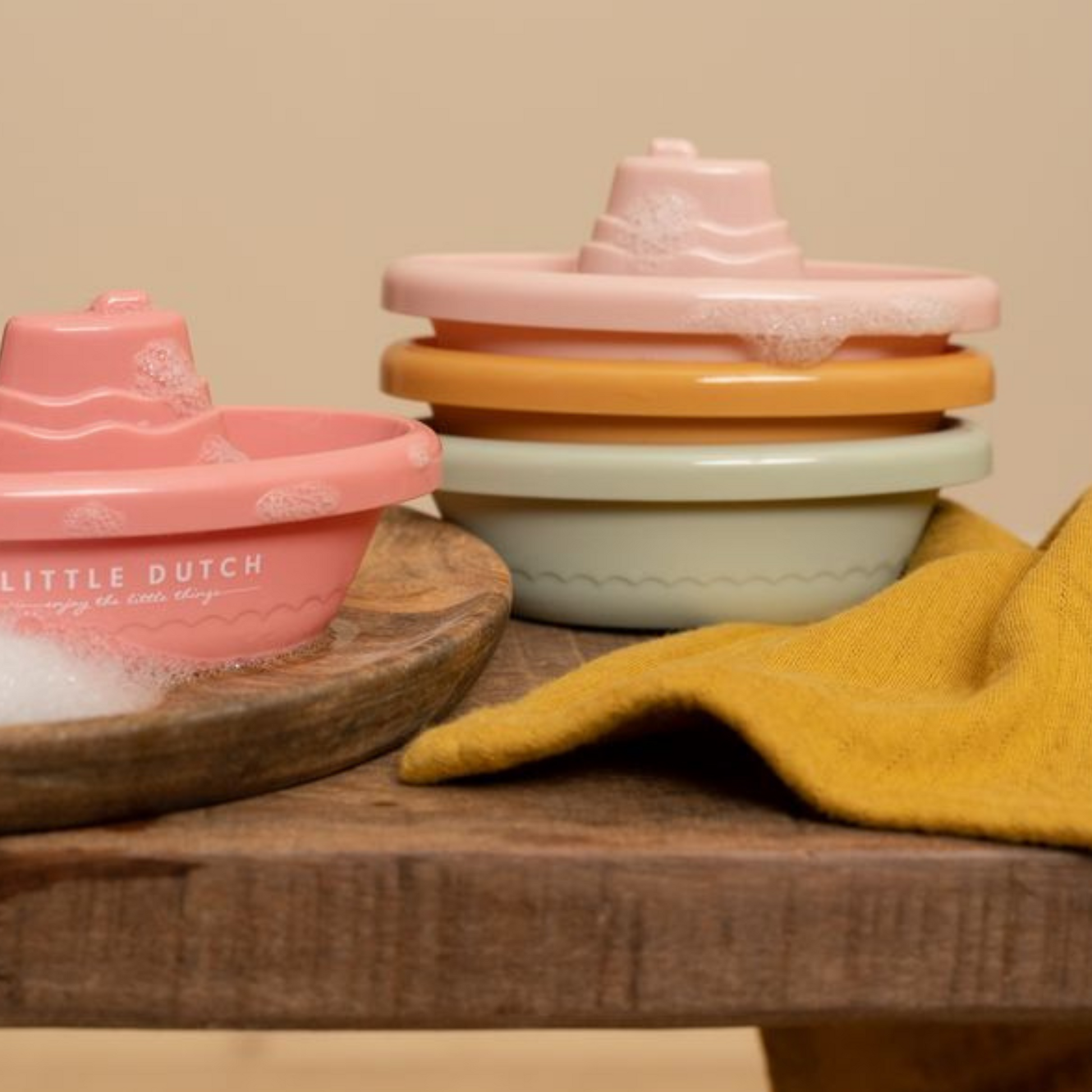 \nDe vrolijke vloot bestaat uit 4 verschillende kleuren en zorgt voor het nodige entertainment in bad. Laat de bootjes door de badkuip drijven, vul ze met water of stapel ze allemaal op elkaar. De kleurrijke badbootjes van Little Dutch prikkelen de verbeelding van je kleintje zowel in het water als op het droge.