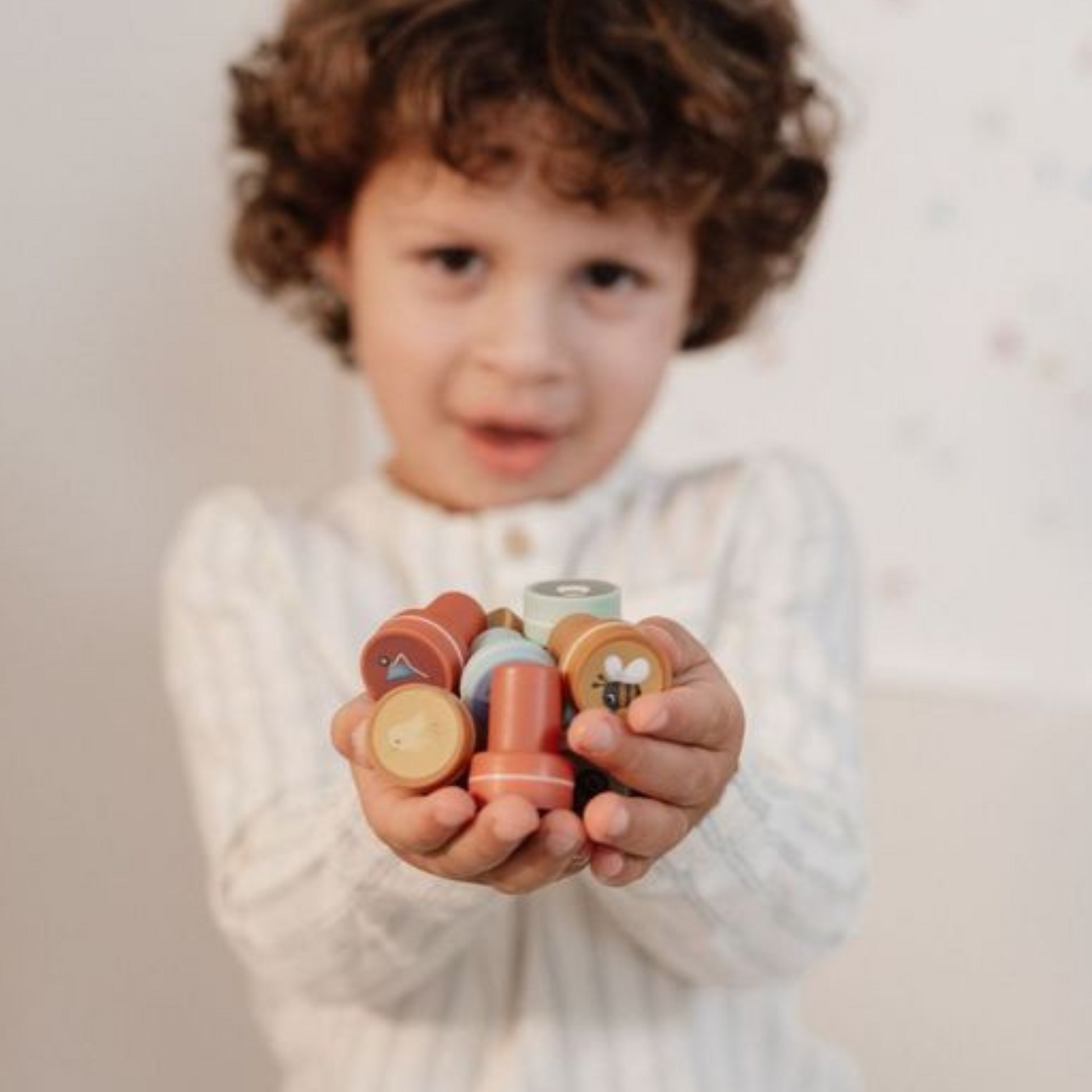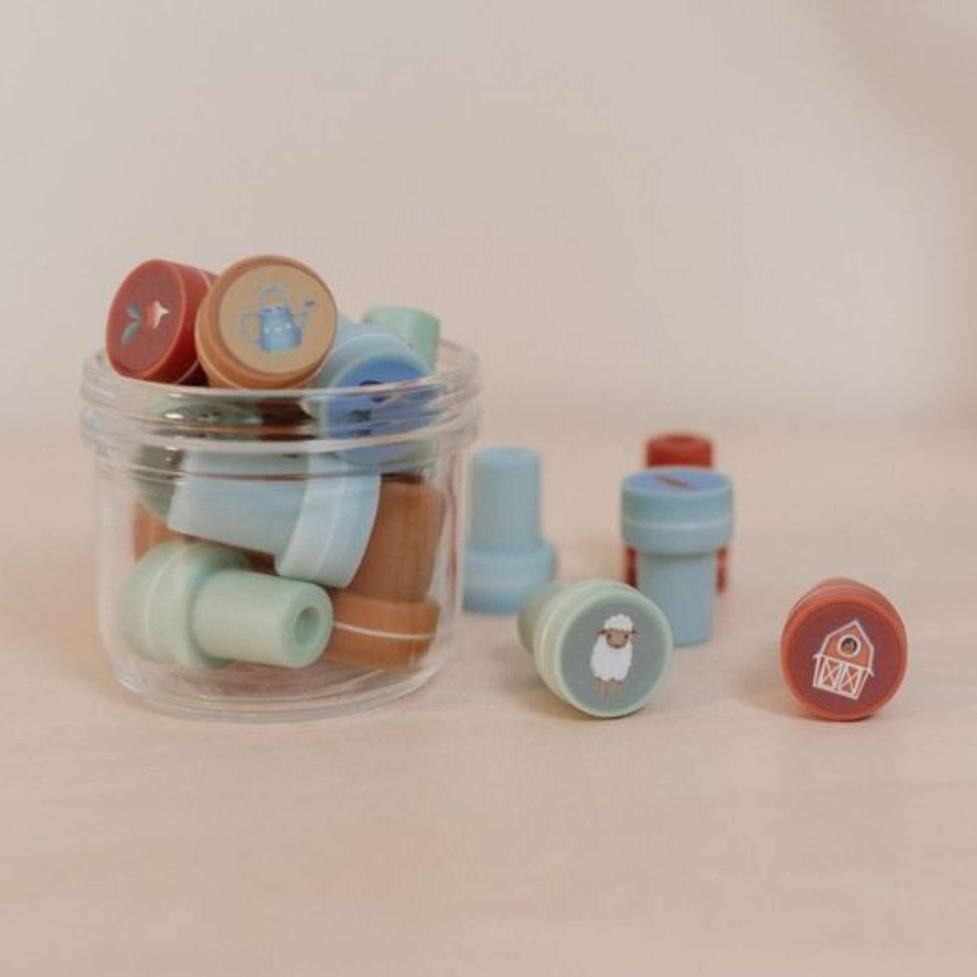 Deze stempelset bevat 16 verschillende stempels, waaronder schattige boerderijdieren zoals een koe, schaap en kip, maar ook een tractor, boerderij en zon. De stempels zijn zelfinkend, dus er is geen losse inkt nodig - makkelijk en meteen klaar voor gebruik! Een leuke en gemakkelijke manier om de creativiteit van kinderen te stimuleren terwijl ze hun fijne motoriek ontwikkelen. Geschikt voor kinderen vanaf 3 jaar.