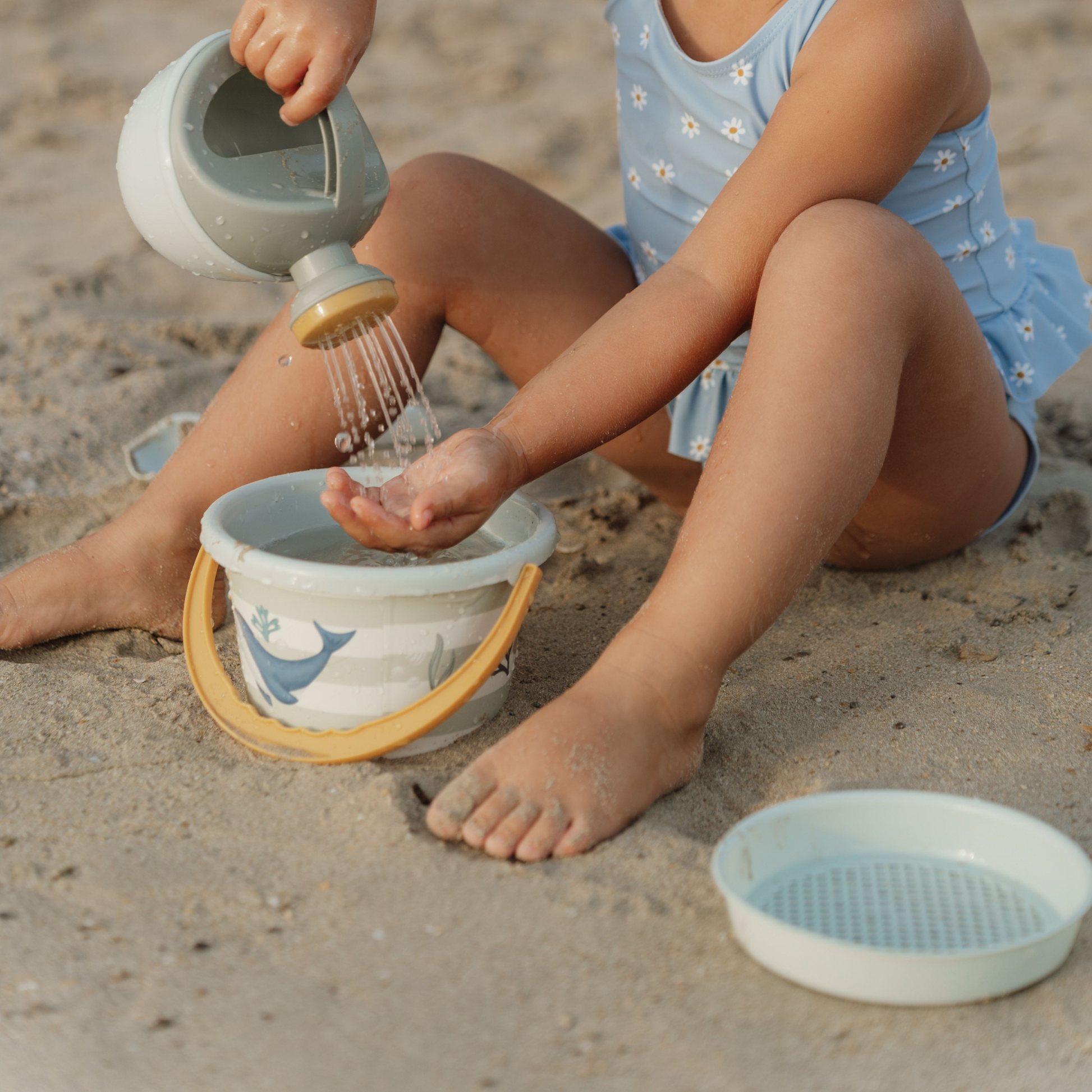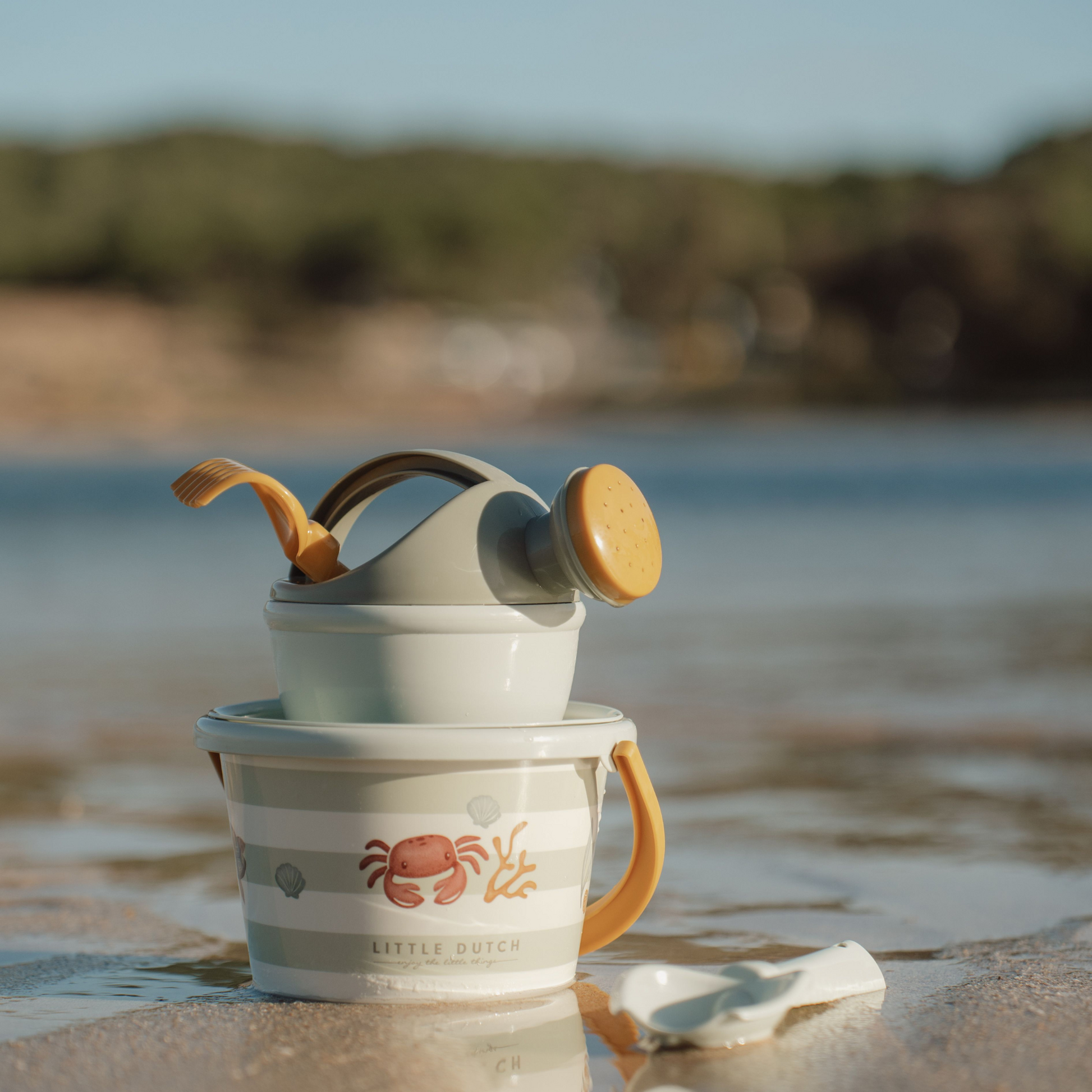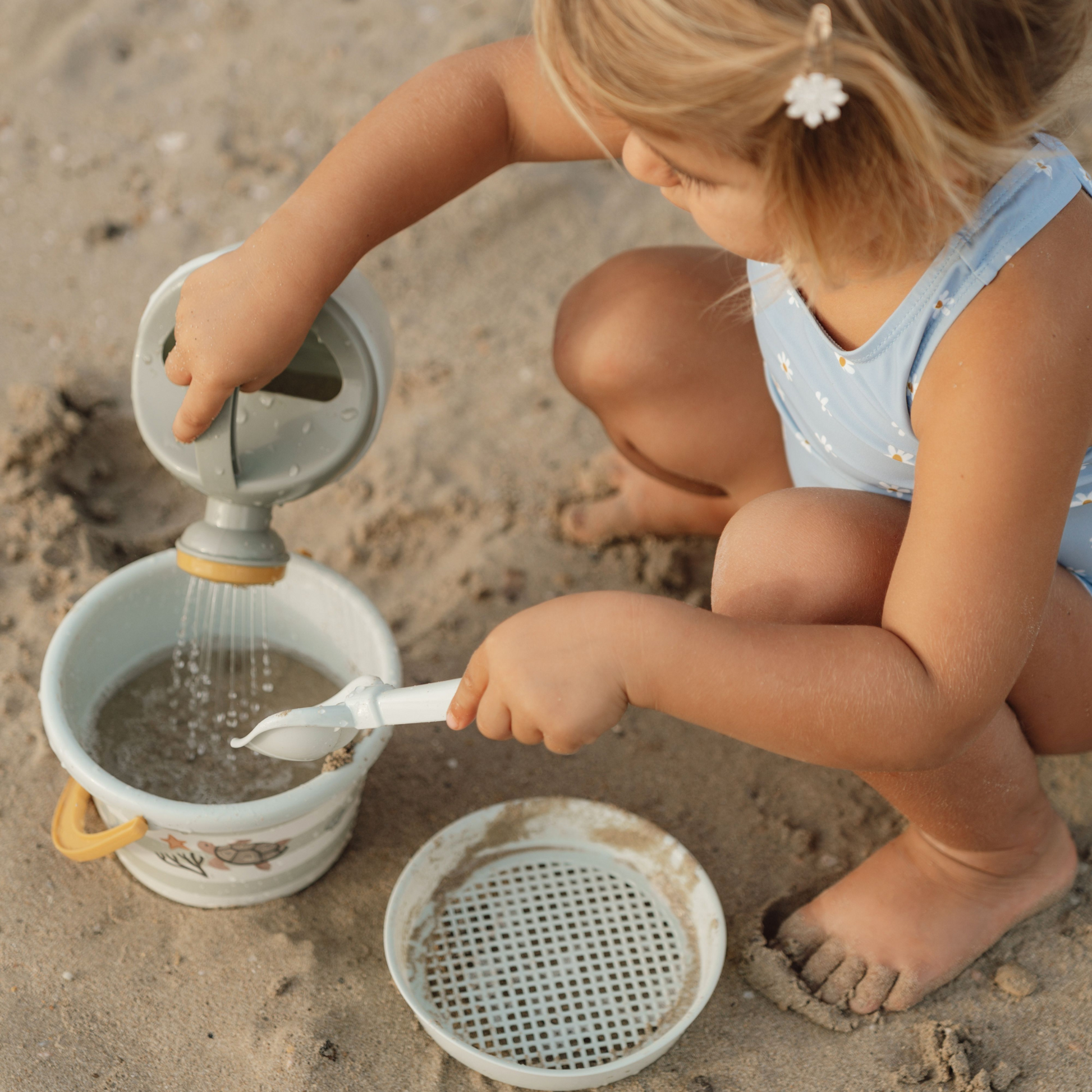 Dit is je nieuwe favoriete set om mee te nemen naar het strand of de zandbak. Of je nu een kuil wilt graven, zandsculpturen wilt bouwen, je ouders met zand wilt bedekken, schelpen wilt verzamelen of met water wilt spelen, deze mooie speelgoedstrandset Fresh Green heeft alles wat je nodig hebt. Met de emmer, schep en hark, gieter en zandzeef heeft je kleintje urenlang speelplezier in het zand.